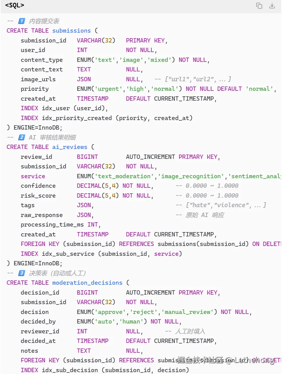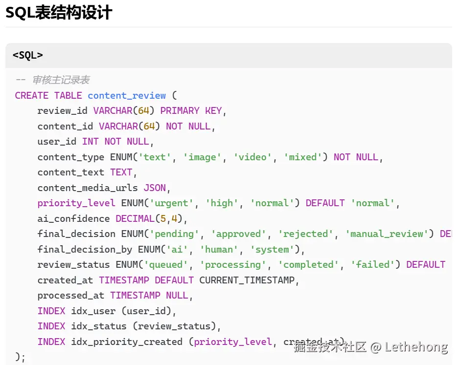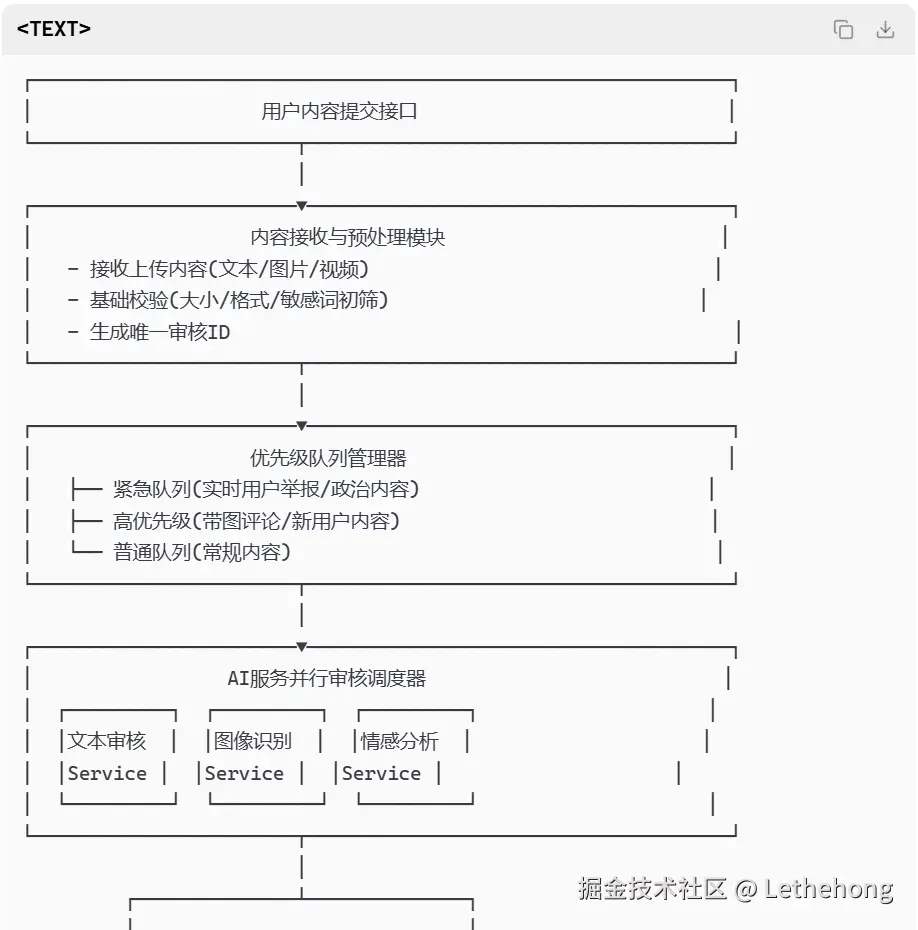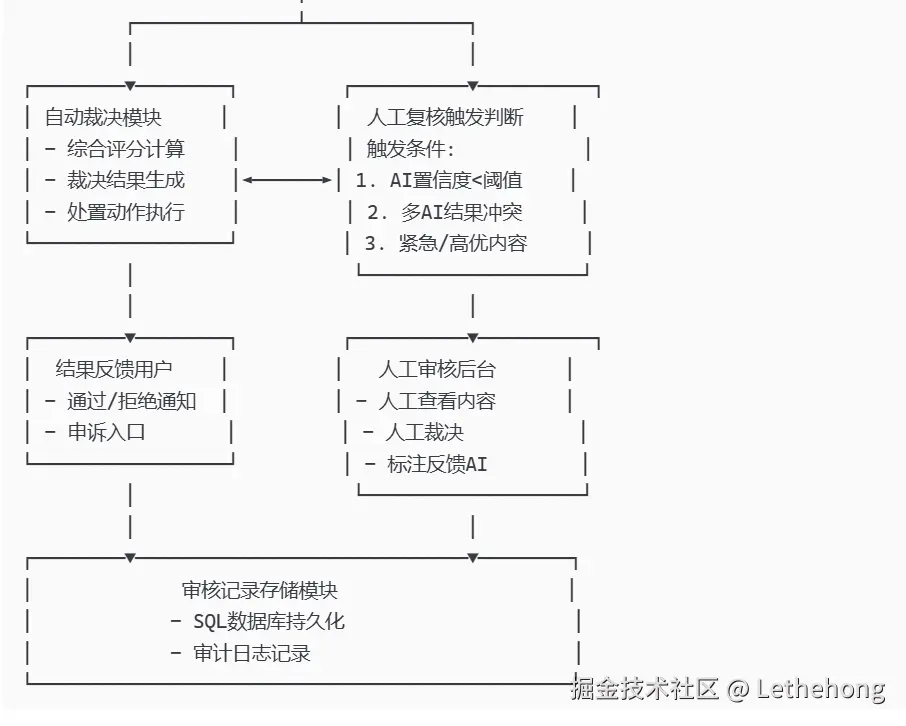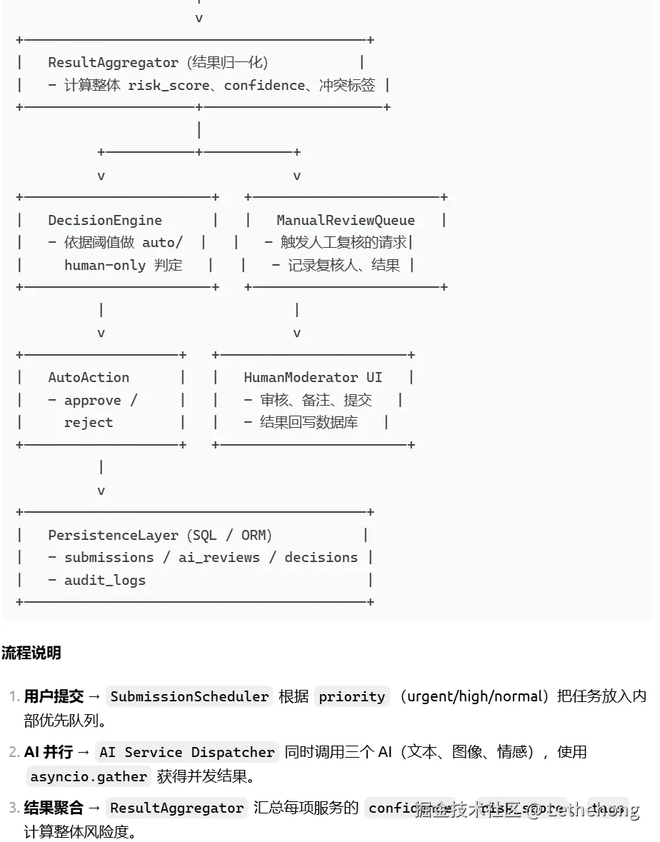 基础流程:描述了内容接收、AI审核、人工复核的基本流程