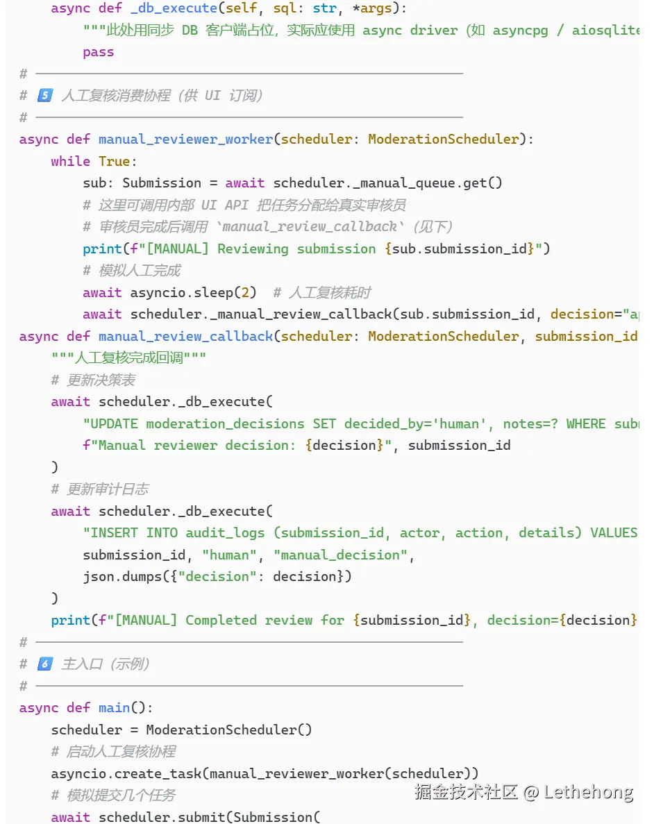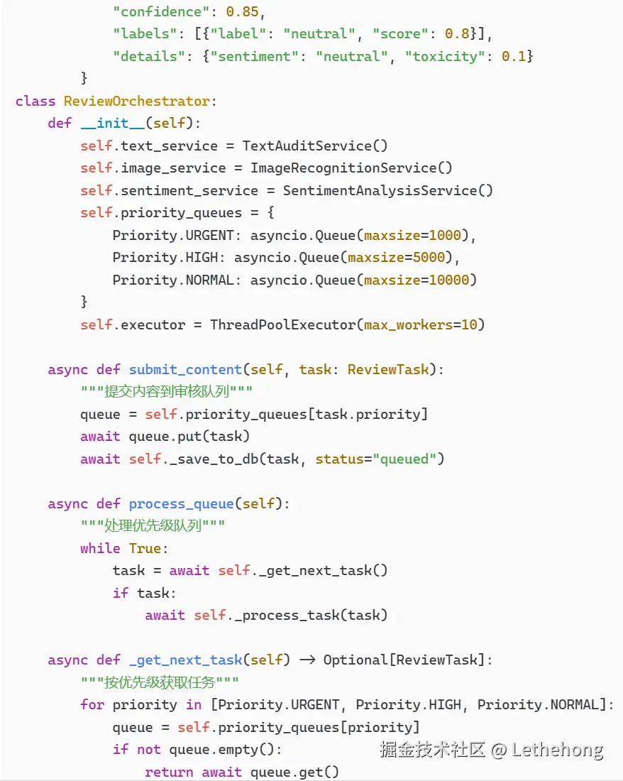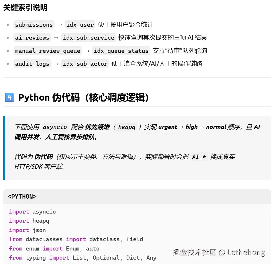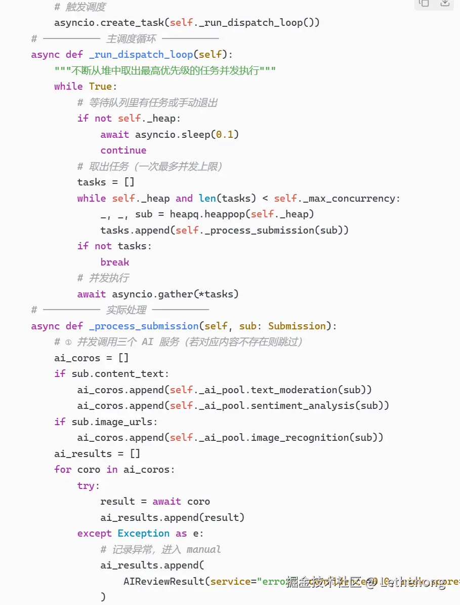 Python伪代码:提供了完整的调度逻辑,包含队列管理、并发处理、结果聚合