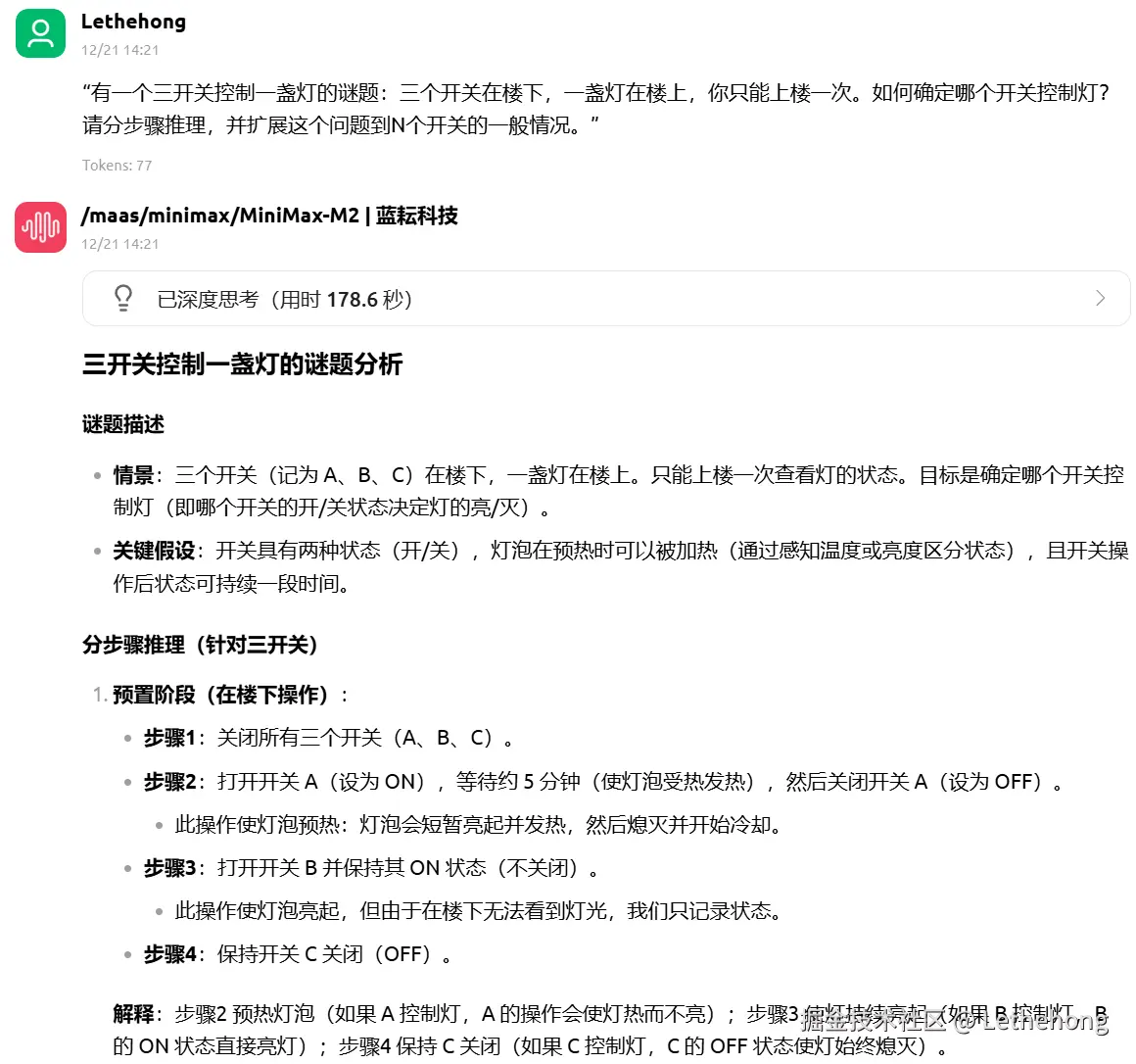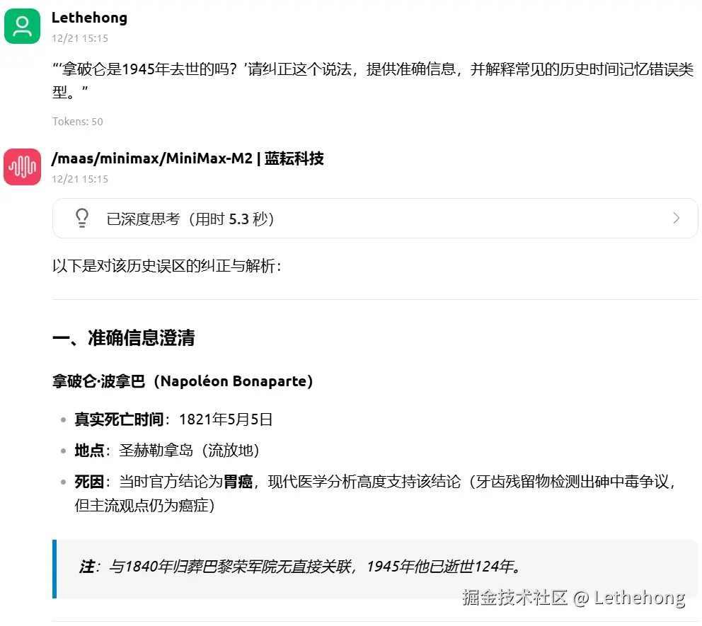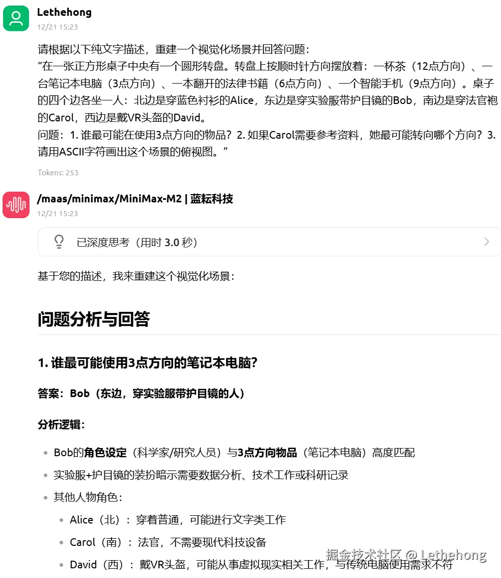MiniMax-M2:侧重于直观解答与步骤推理,语言简洁易懂,但较少涉及背景知识或扩展分析,更适合快速获取具体问题答案。