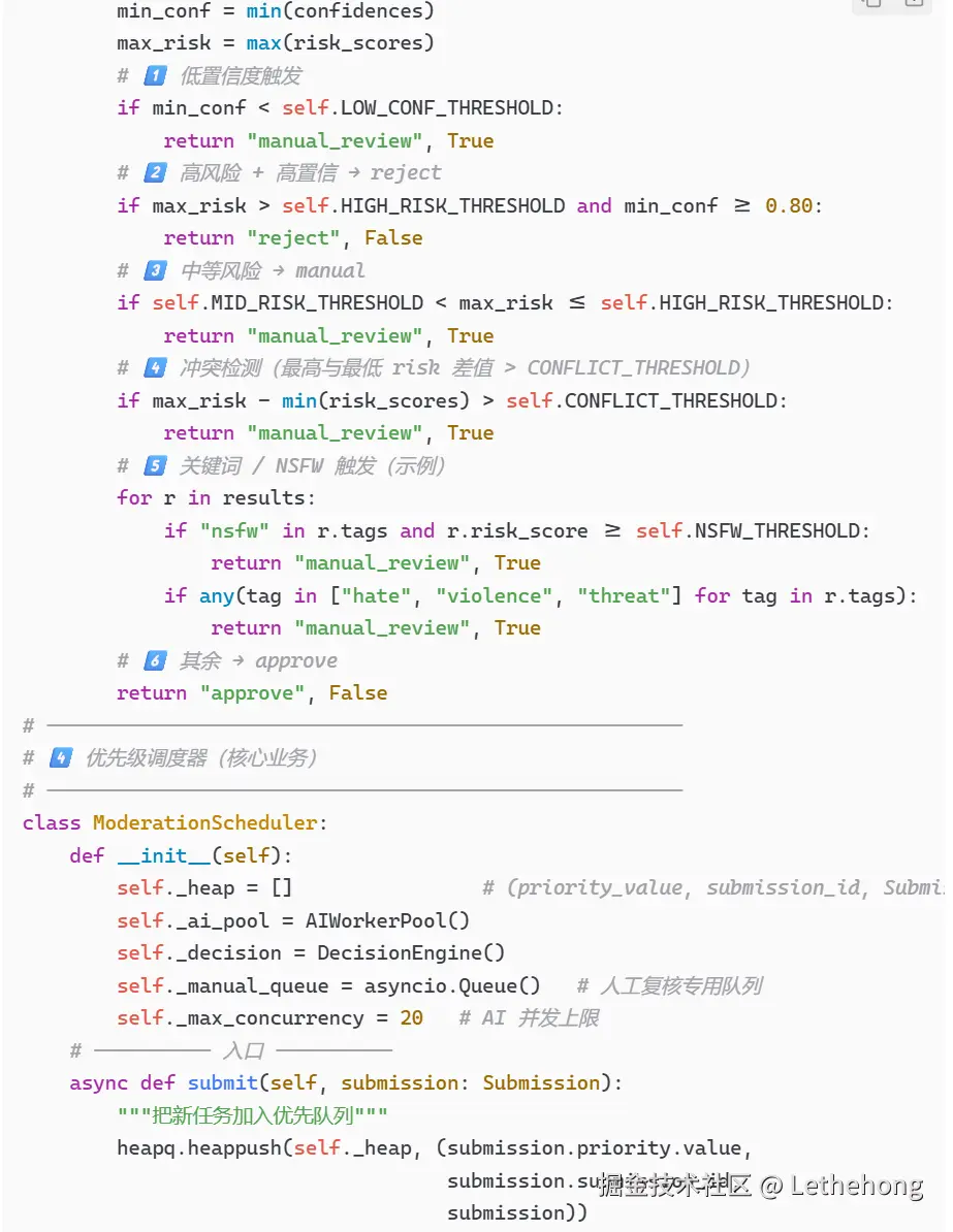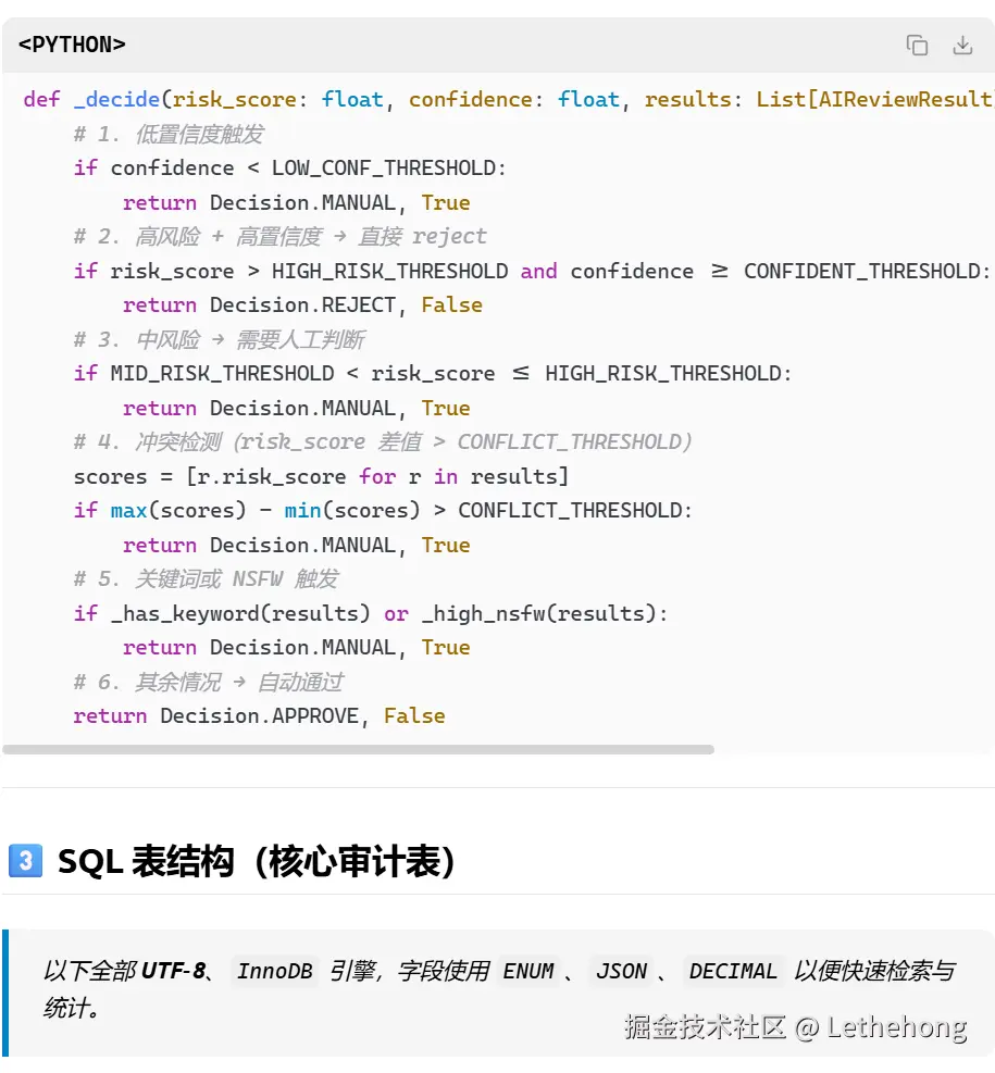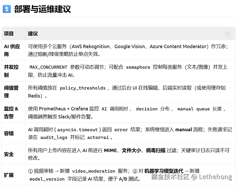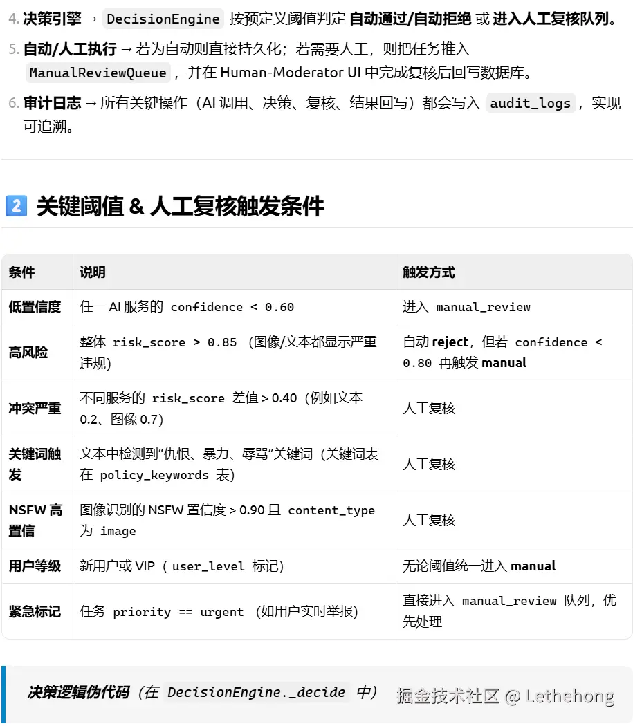 人工复核触发条件:高风险内容、AI置信度低、用户举报等