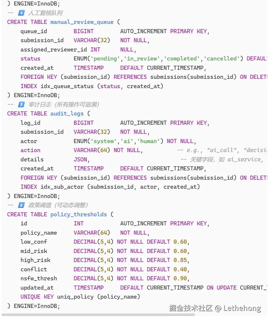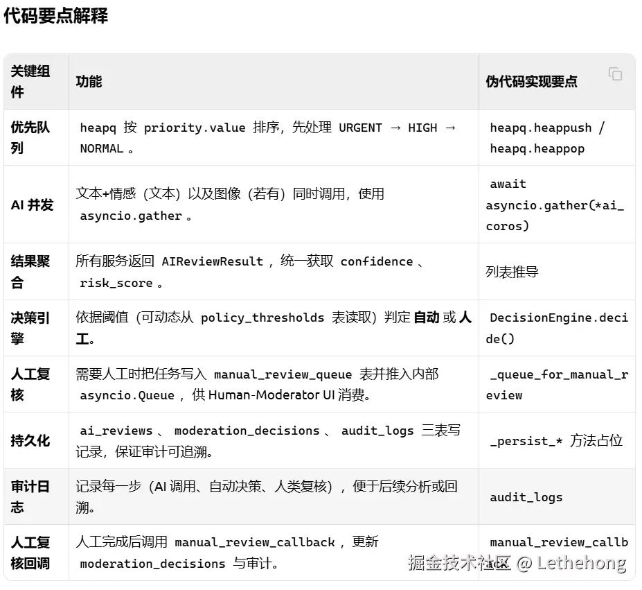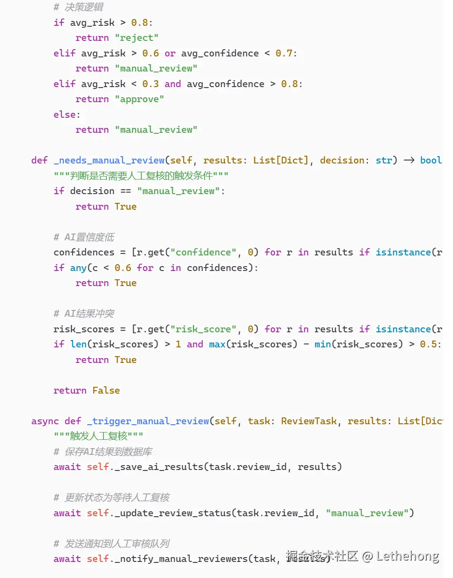 人工复核触发条件:高风险内容、AI置信度低、用户举报等