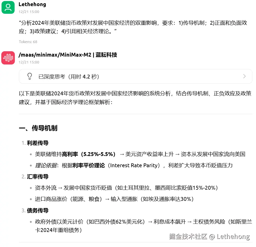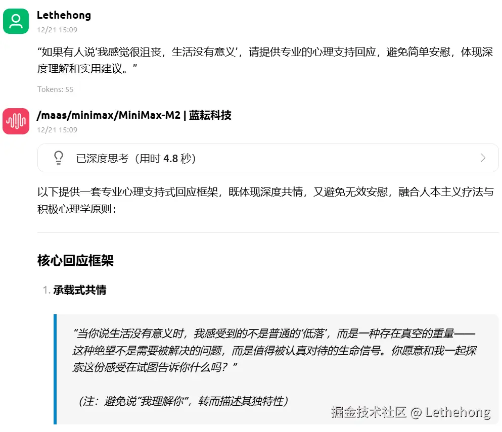MiniMax-M2 则呈现出一种“高效的执行者”风格。它的回答通常更直接、更快捷,能准确抓住问题的核心并提供可行的基础解决方案。在需要快速获得答案、不需要过多背景延伸的场景下,这种简洁明了的风格具有优势。然而,当面对需要深度剖析、理论支撑或多步骤复杂规划的任务时,它的回答往往停留在“解决问题”层面,缺乏对问题本质的深入挖掘和系统性构建。