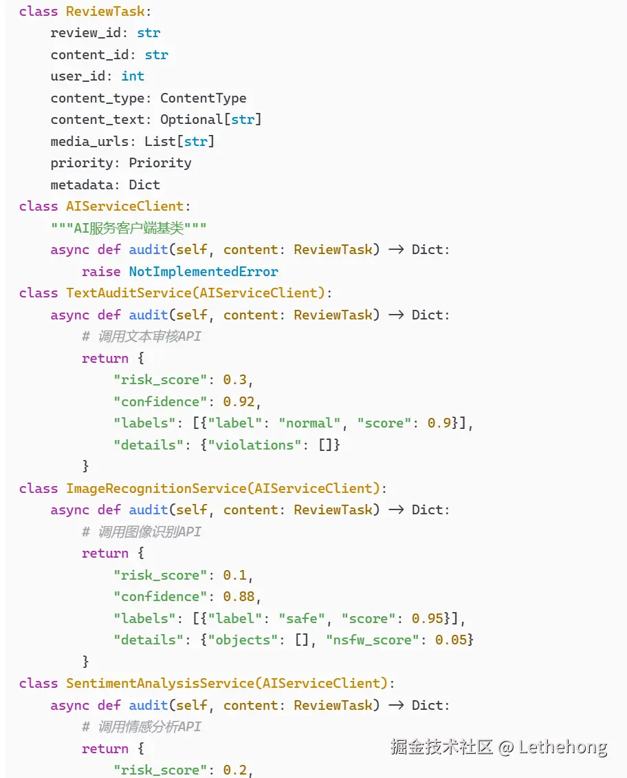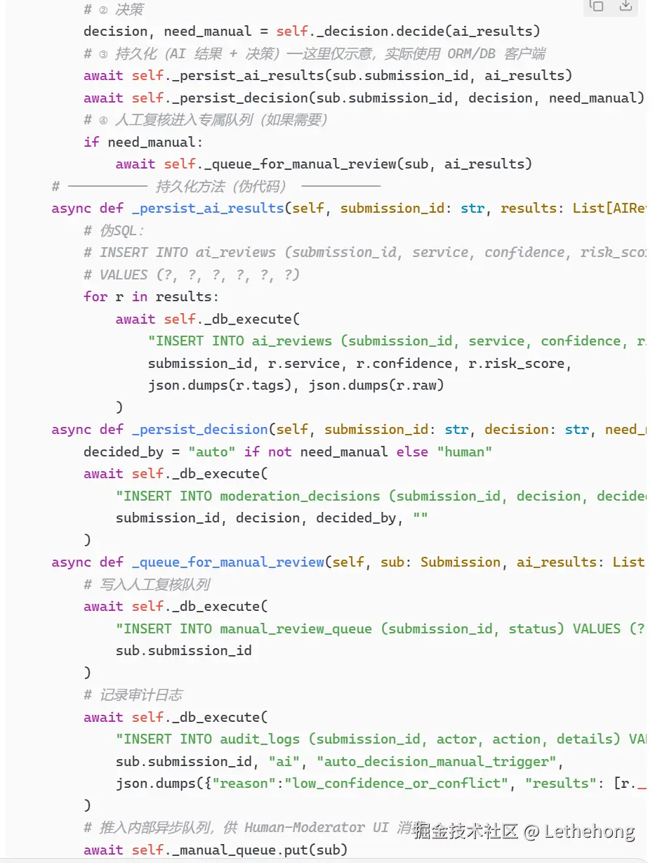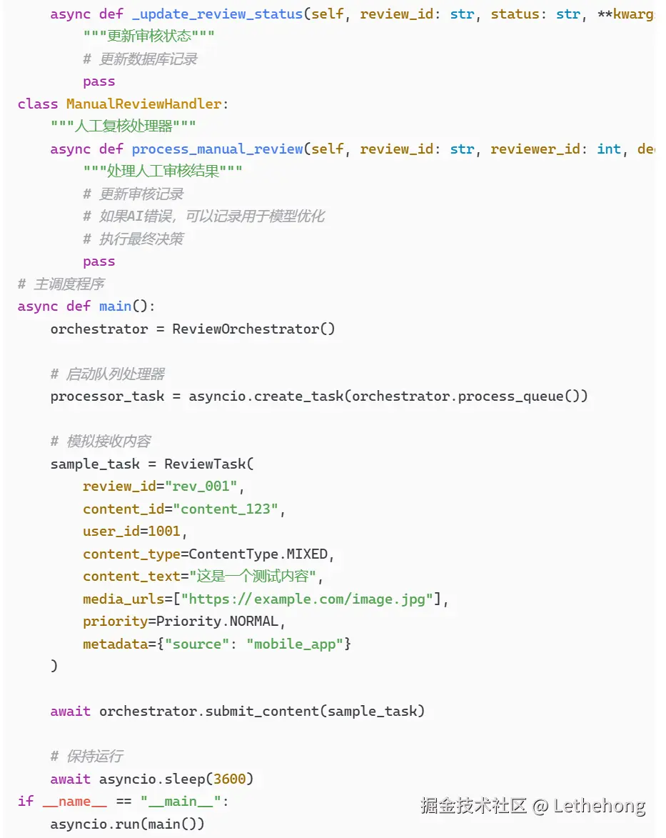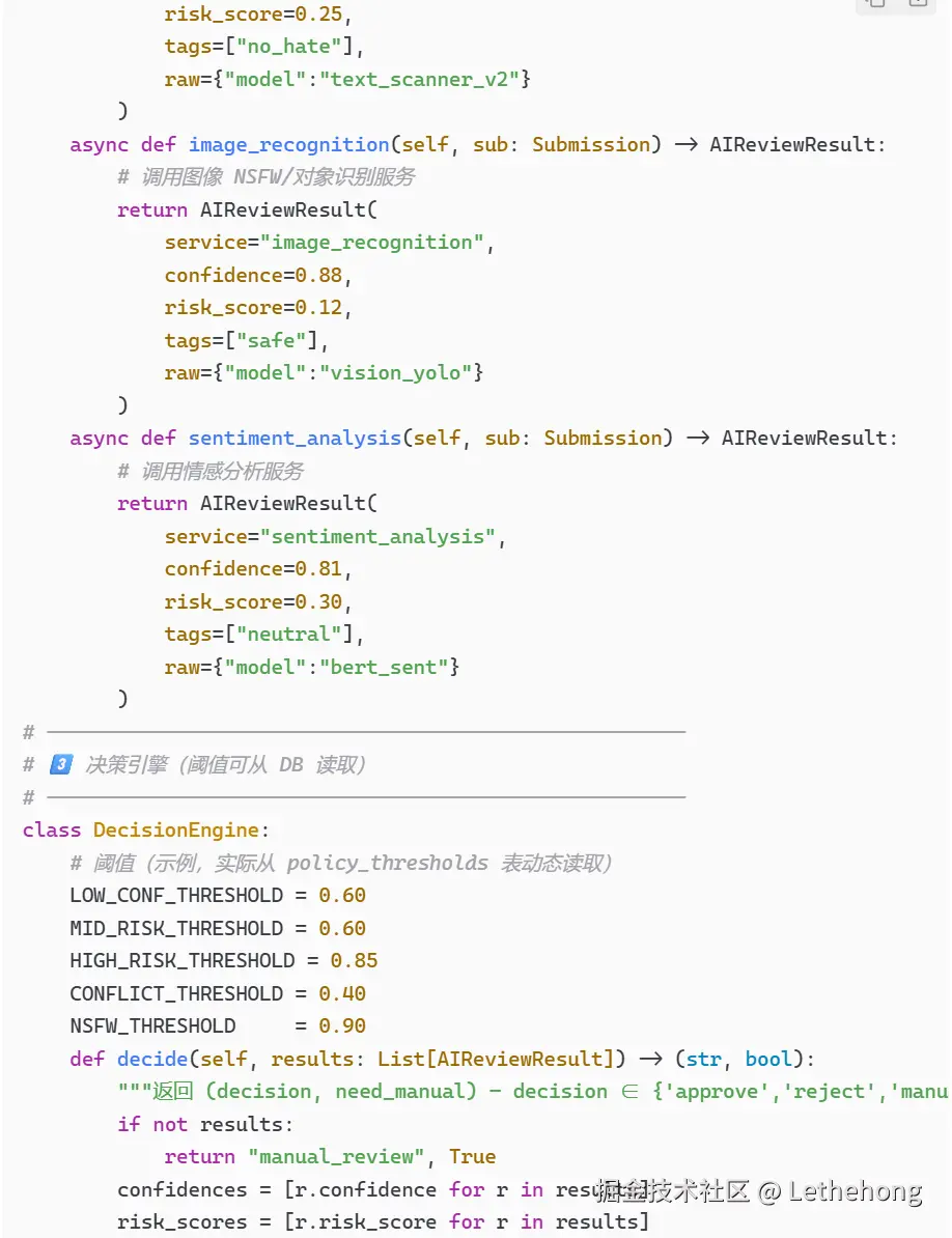 代码片段:展示了基本的审核调用逻辑