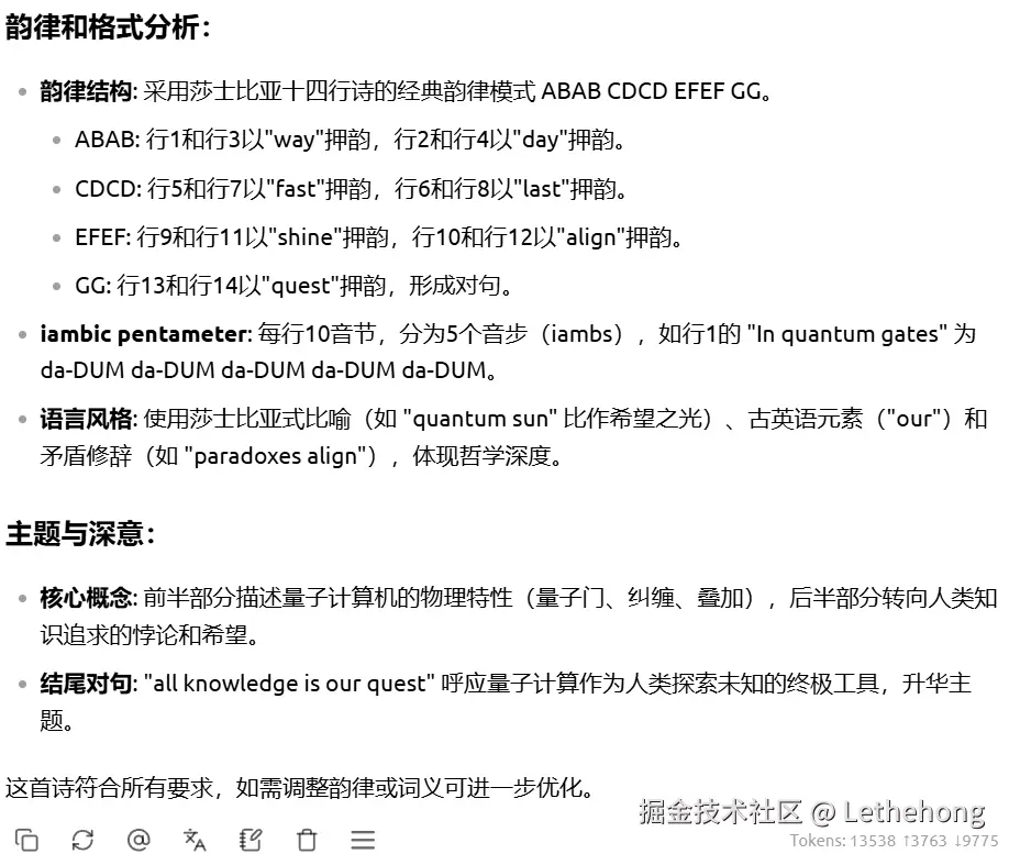 DeepSeek-V3.2 确实如其定位所言,在“平衡”上做得相当出色。它并非单纯追求响应速度,而是在保证输出紧凑、效率更高的同时,顽强地保留了深度分析的骨架。无论是将“理发师悖论”清晰关联到罗素悖论和集合论,还是为“三开关谜题”提炼出可推广到N个开关的一般性解决思路,都体现出其强大的逻辑抽象和理论延伸能力。在创意写作中,它能精准把握“冰山理论”的文风精髓;在专业分析时,又能搭建起有理论引用、有分层辨析的严谨框架。它的回答给人一种“冷静的专家”感——结构完整、逻辑严密、信息密度高,并且始终在尝试提供超出问题表面的、更具教育意义和系统性的价值。