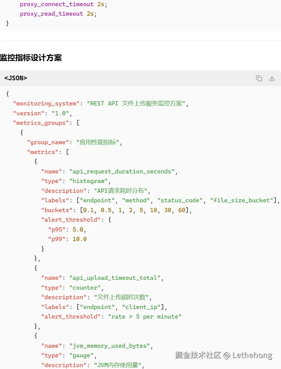 监控指标设计方案(用JSON格式描述)”