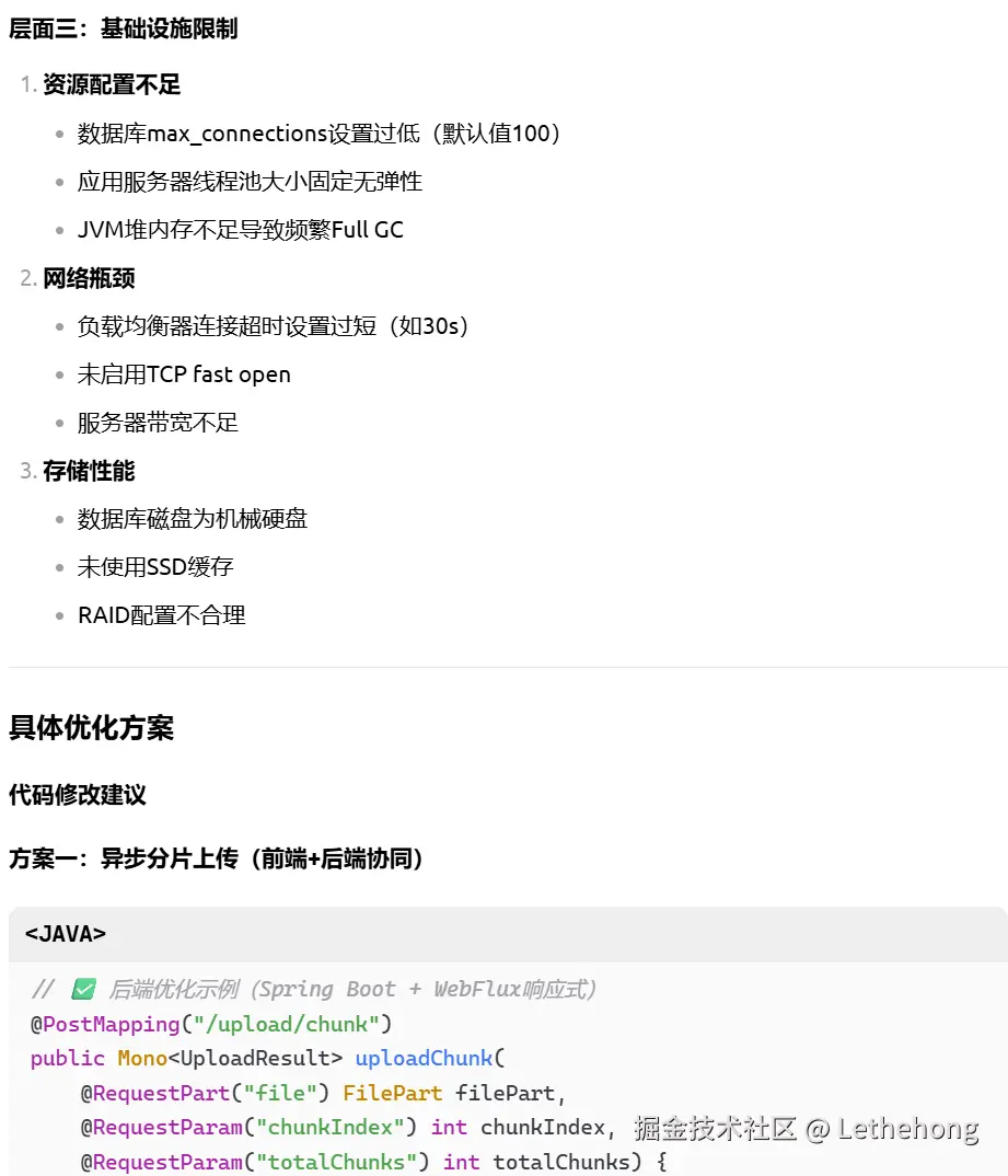 优化建议:包括分片上传、连接池优化、缓存等通用方案