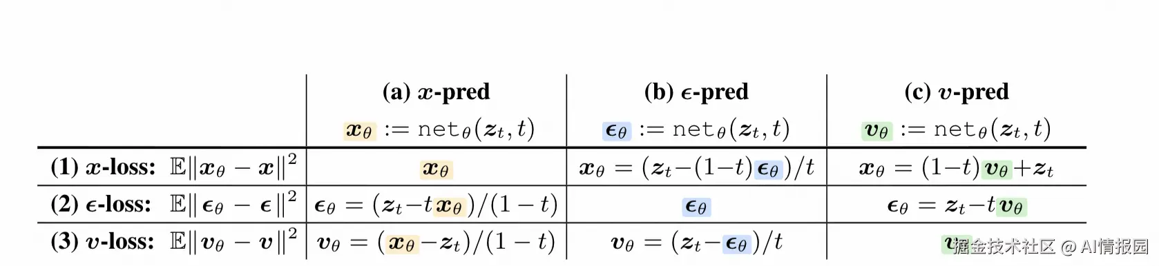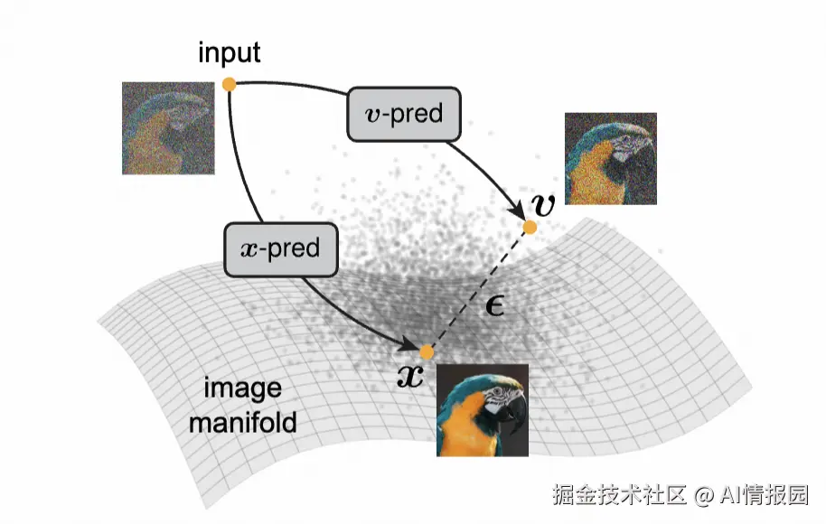 v -prediction: 预测速度(两者一种线性组合)。