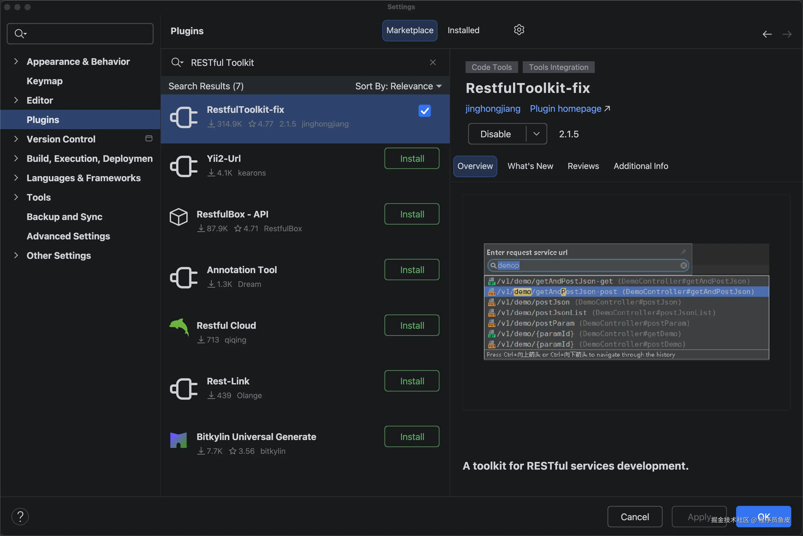 比如 IDEA 的 RESTful Toolkit 插件,可以快速查看和测试接口。