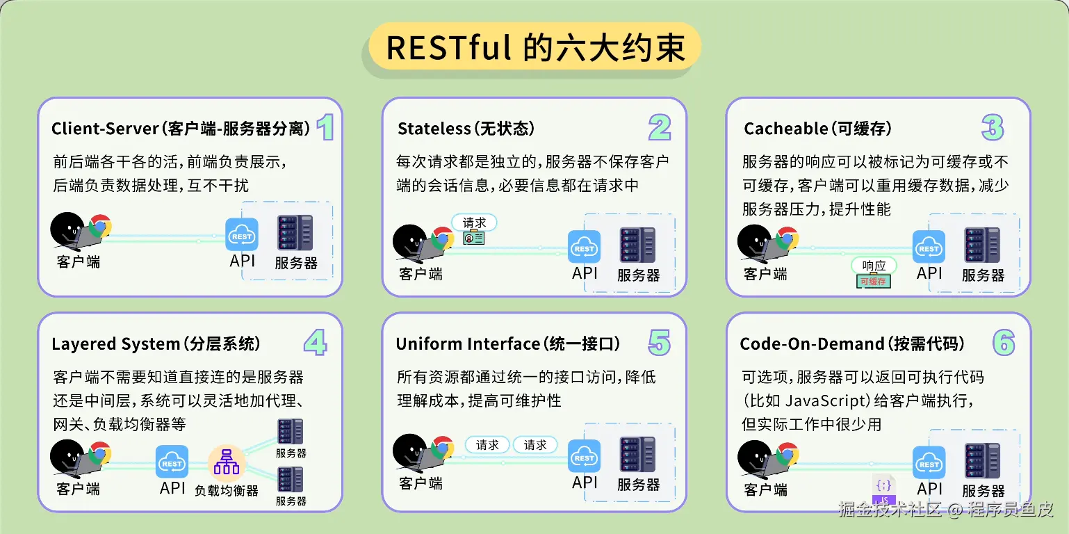 比如很多同学都不知道,RESTful 其实有 6 个约束条件: