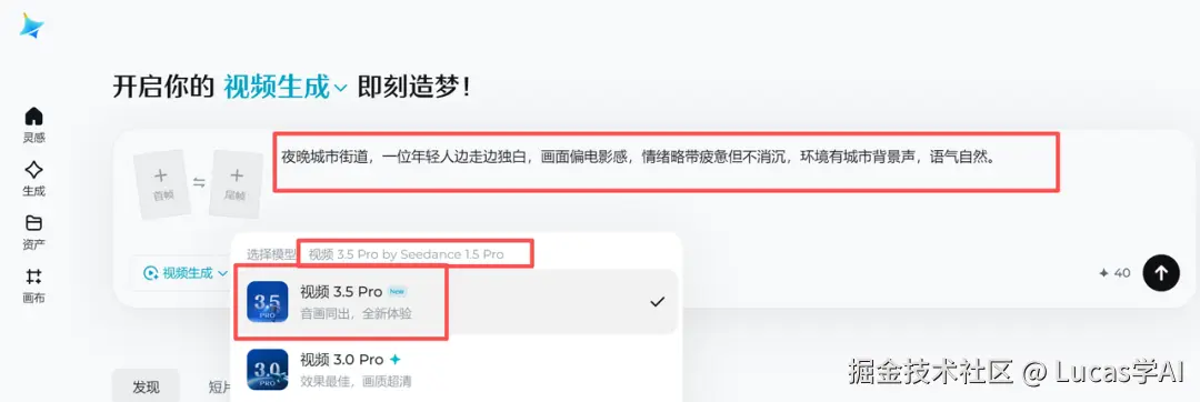 ✅ 亮点一:视频 3.5 Pro 模型 = 音画一体生成