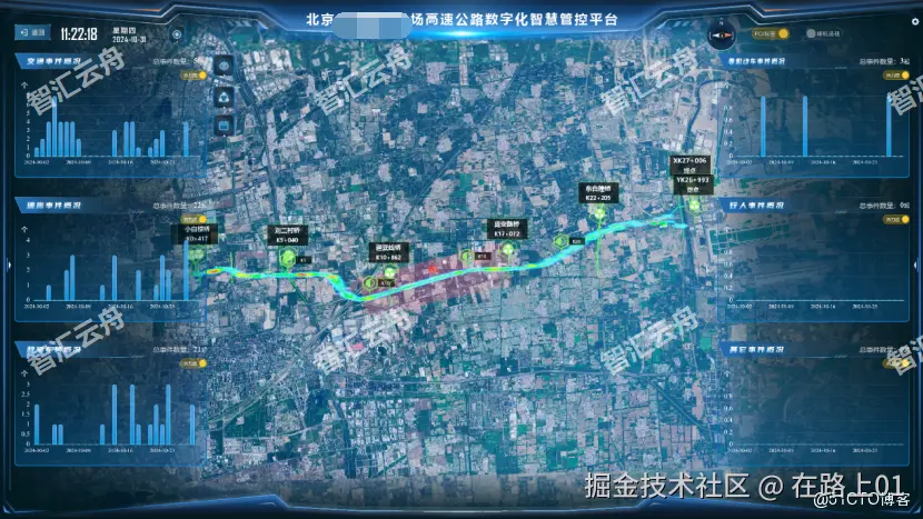 系统对接整合气象预报、高速水位监测、气象监测、拥堵事件监测、能见度监测、降雨量监测、降雪量监测、预警发布等高速预警信息,通过空间智能数据融合分析技术对数据进行统计分析,定制高速可视化专题,通过图表形式直观展示核心数据,并实现数据下钻,联动三维场景进行详情数据查看和业务处置,便捷掌控高速应急态势。