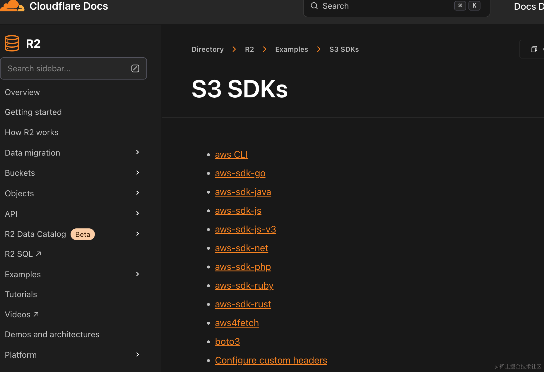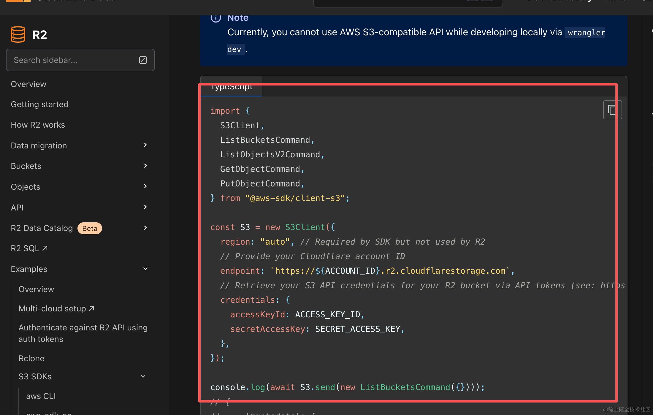 cloudflare的免费存储还是很香的,所以想试试怎么通过接口的方式使用,但是最后发现不能在web端使用,只能通过后端来访问,而且R2用的是亚马逊的s3接口标准,文档:developers.cloudflare.com/r2/examples…