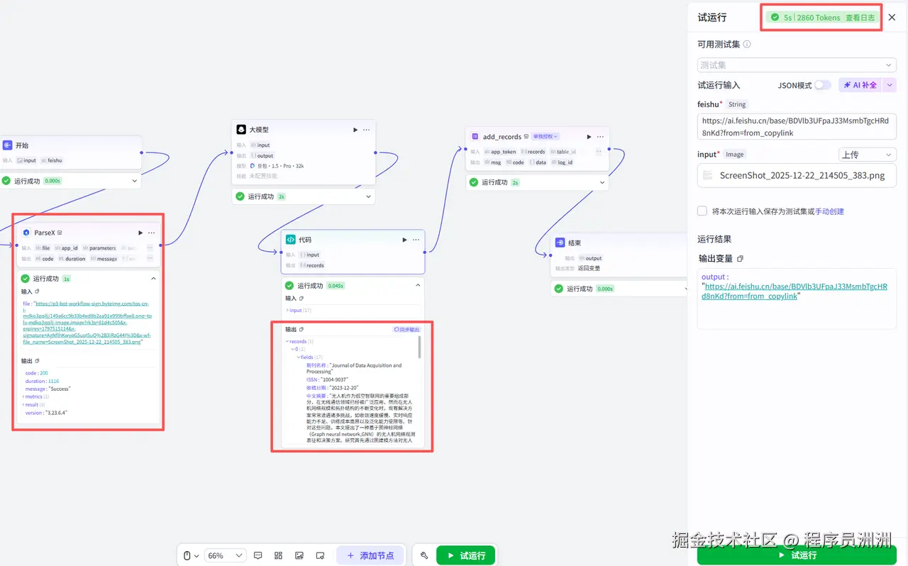 可以看到,整个过程大约5s左右就通过了整个流程,效率非常快,着实惊艳到我了,ParseX识别的数据也特别准确。后续找了其他论文多测了多次,大概发现P99处理耗时仅4.5s左右,效率可以说是远超传统OCR工具;同时从我个人的测试结果来看,ParseX的数据识别准确率是100%,单页处理成本也非常低,可以说从耗时、精度到成本的全维度优势,既刷新了流程效率的体验,也让这次自动化落地的效果着实惊艳。