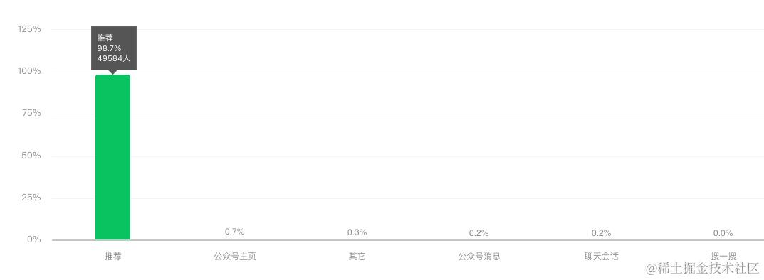 至于为什么火爆,从阅读渠道构成来看 98.7% 的阅读量来自于公众号推荐。只能说是老天喂饭吃 ~