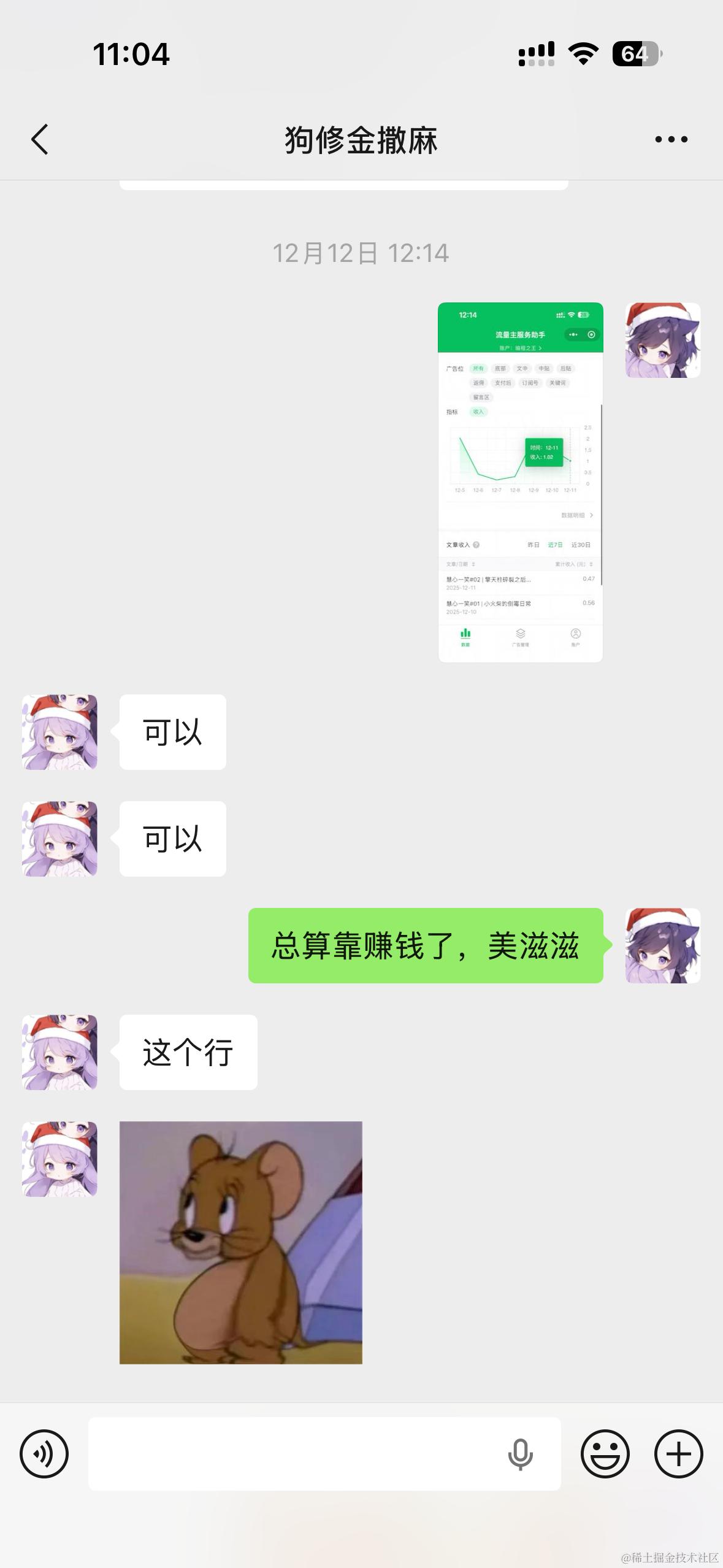 可能有人会问,如果 AI 的笑话漫画没有火,你还会坚持下去吗?刚做前两个漫画文章时,还没有火,一天收入 1 块钱,我已经觉得很美滋滋了。投入的产出符合我的预期,毕竟只需要准备个笑话雏形,其他都交给 AI 写就行了。我还和女朋友炫耀: