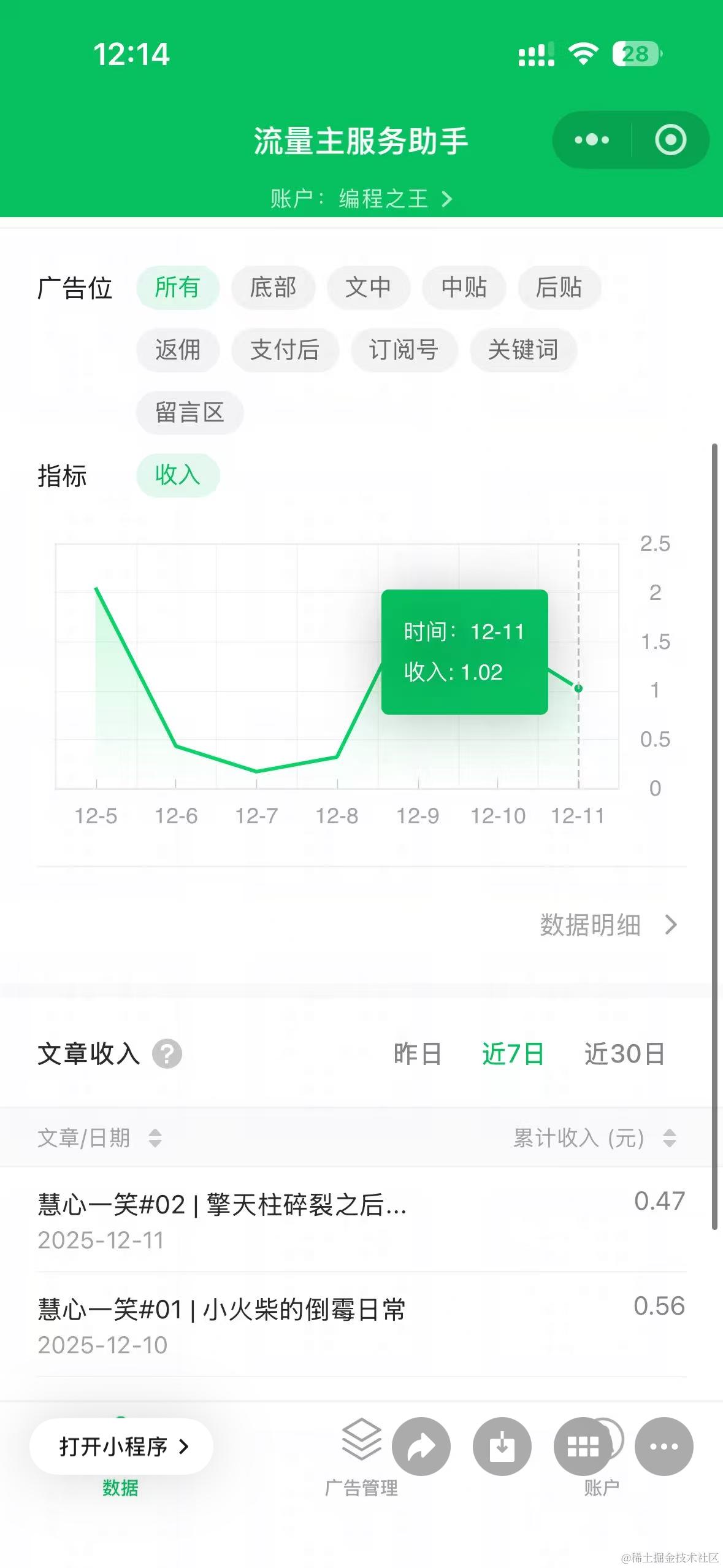 在第一篇爆火的后一天,慧心一笑#03 | 爸爸去钓鱼~ 数据开始上升,感觉像是连带效应: