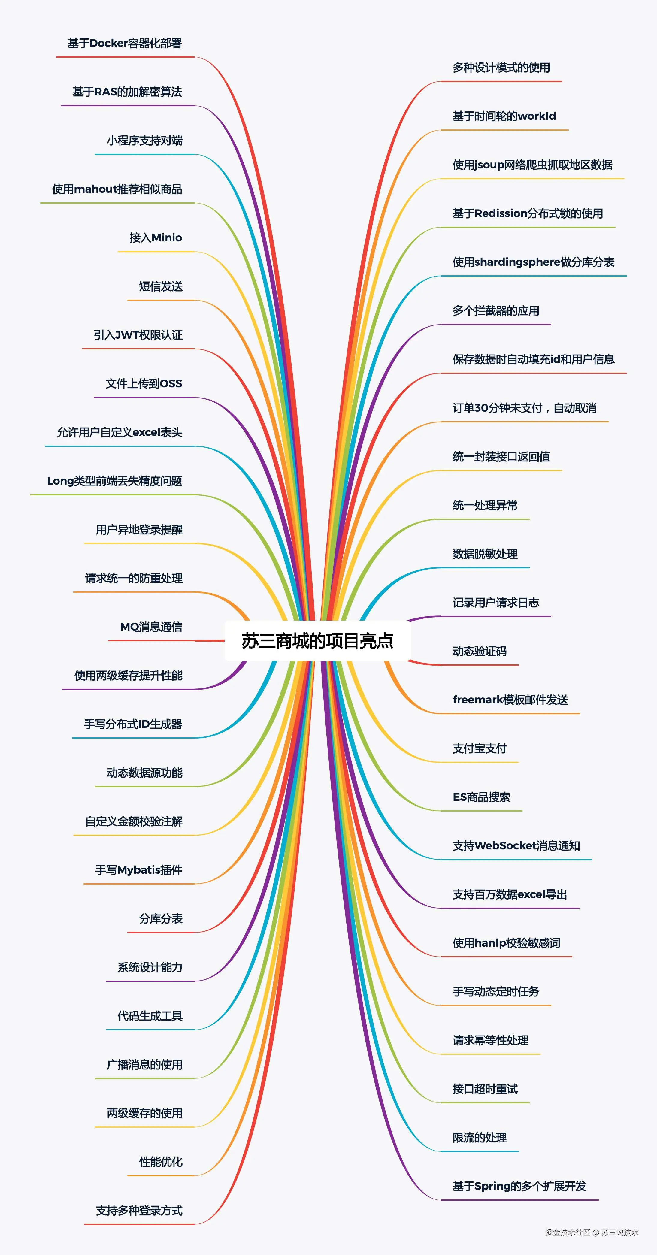 商城项目中包含了:基于Docker部署教程、域名解析教程、按环境隔离、网络爬虫、推荐算法、支付宝支付、分库分表、分片算法优化、手写动态定时任务、手写通用分页组件、JWT登录验证、数据脱敏、动态workId、hanlp敏感词校验,手写分布式ID生成器、分布式限流、手写Mybatis插件、两级缓存提升性能、MQ消息通信、ES商品搜索、OSS服务对接、失败自动重试机制、接口幂等性处理、百万数据excel导出、WebSocket消息推送、用户异地登录检测、freemarker模版邮件发送、代码生成工具、重复请求自动拦截、自定义金额校验注解等等一系列功能。