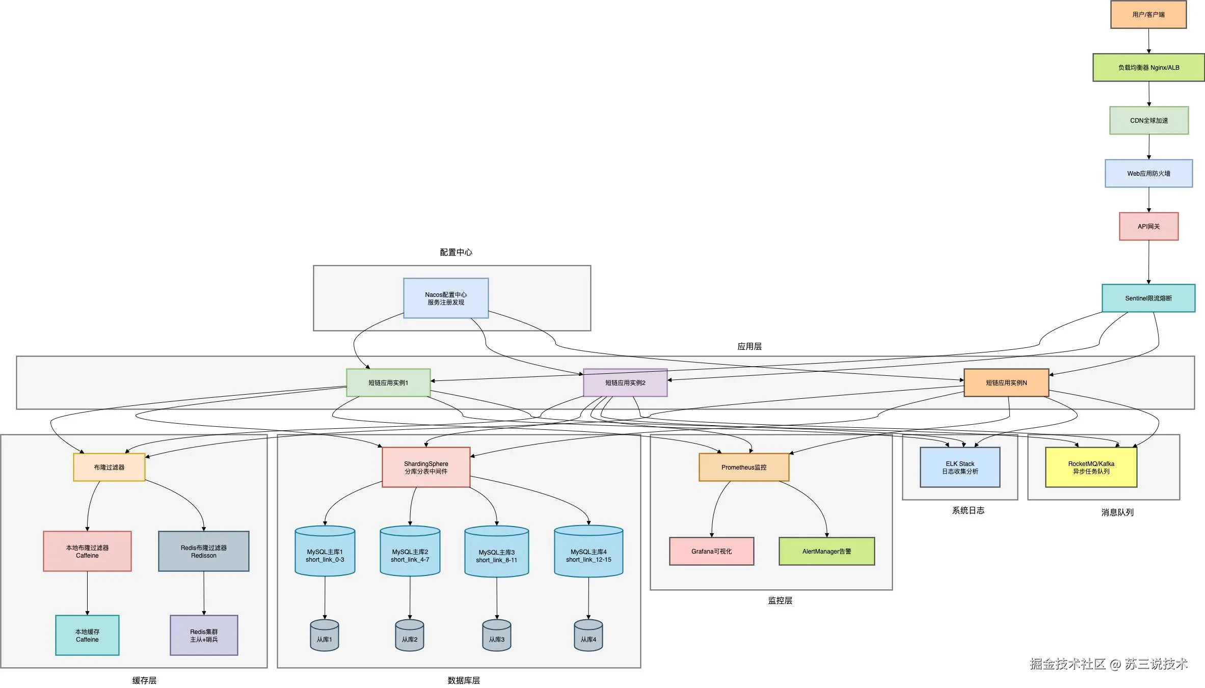 100万QPS短链系统的系统架构图如下: