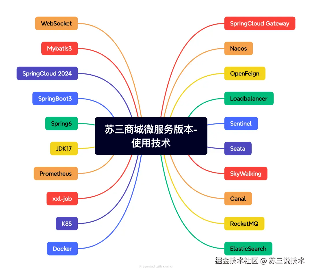 这个版本在商城已有技术基础之上,又增加了:SpringCloud Gateway、WebFlux、Seata、Skywaking、OpenFeign、Loadbalancer、Sentinel、Nacos、Canal、xxl-job、Prometheus、K8S等。