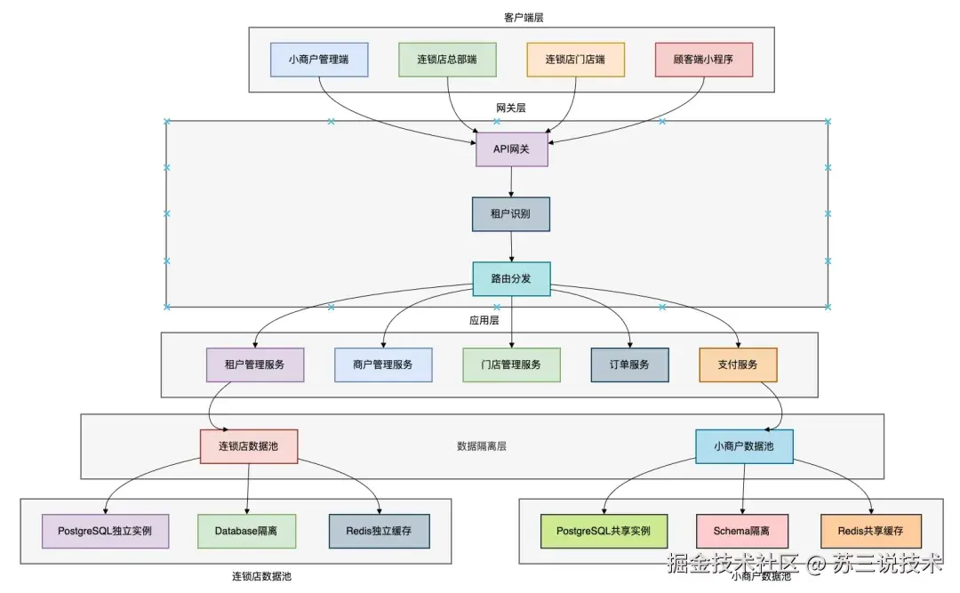 - 应用层:小程序、移动端H5、管理后台