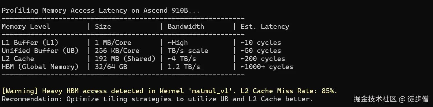 - HBM (High Bandwidth Memory) :这是我们的主仓库。容量巨大(32GB/64GB),但距离核心最远,延迟最高(~1000+ cycles)。