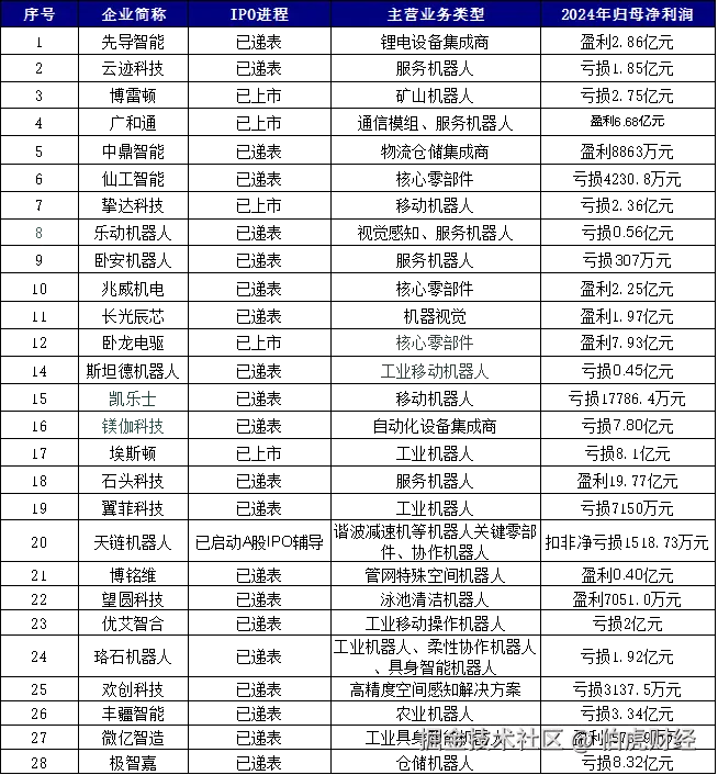 其中,明星企业宇树科技已官宣在今年四季度正式递表,智元机器人通过收购上纬新材,弯道超车成为隐形的“机器人第一股”;乐聚智能则预计在明年3-6月完成辅导。
