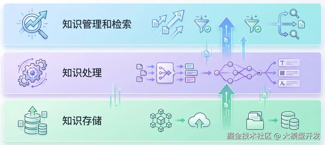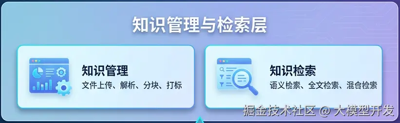 最上层的知识管理与检索层,是用户直接交互和工程运营的界面,它承担着从知识收录到知识输出的业务闭环。