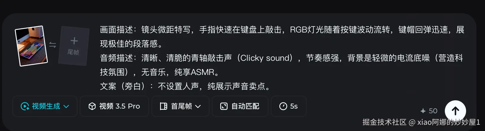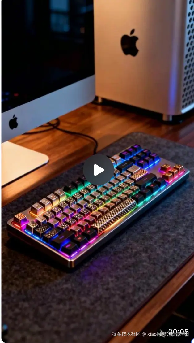 卖键盘,卖的就是“手感”和“声音”。以前拍这种视频,需要极度安静的环境和昂贵的收音设备,还要后期对轨,非常麻烦。