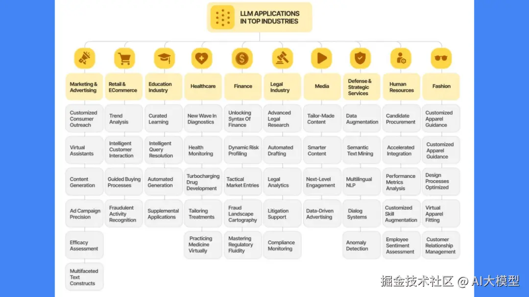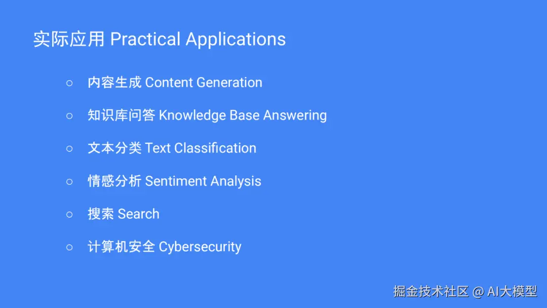 真正使用起来,LLM可以完成很多事情。基本功能包括编写内容,回答知识库中的问题,对文本进行分类,对文本进行情感分析,以及辅助检索,保证电脑安全等。在产业上也有广泛应用,比如广告业可以用它进行精准投放,教育界可以进行个性化教学,医学界可以用它进行辅助诊断,金融界可以用它进行动态风险监控。
