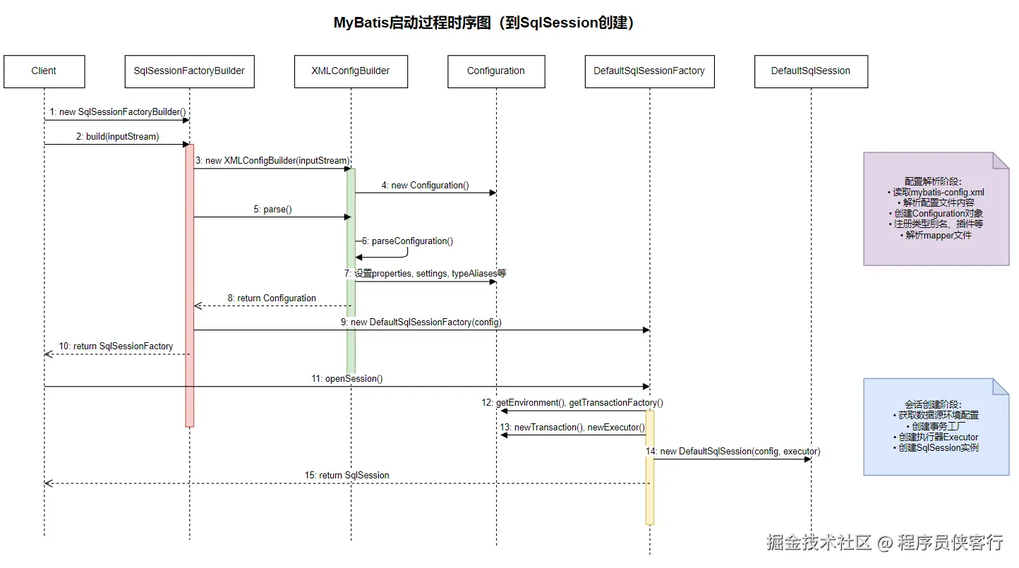 经过以上步骤,创建了一个包含了MyBatis需要的所有配置Configration对象,接着会创建一个
