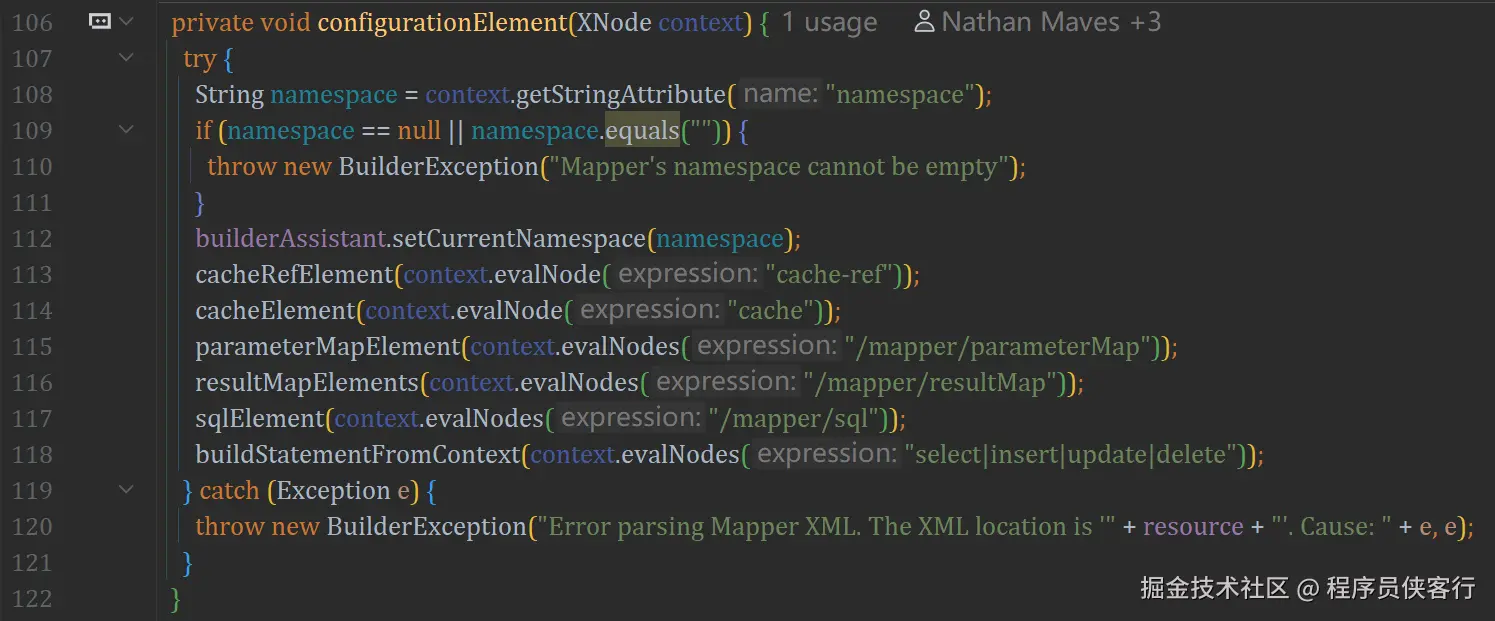 源码中会通过XMLMapperBuilder,来完成Mapper文件解析。同时将Mapper.xml文件对应的接口,注册到Configuration。
