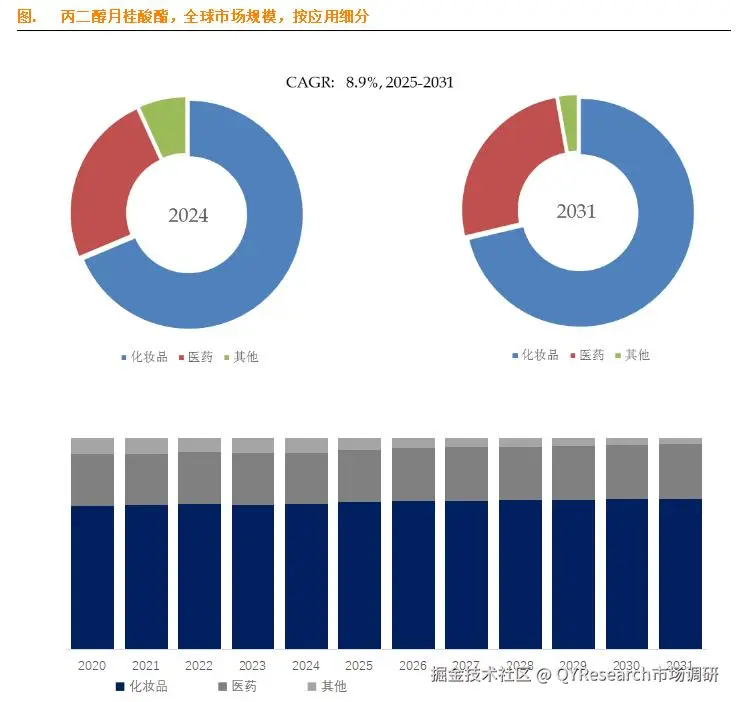 就产品应用而言,目前化妆品是最主要的需求来源,占据大约68.7%的份额。
