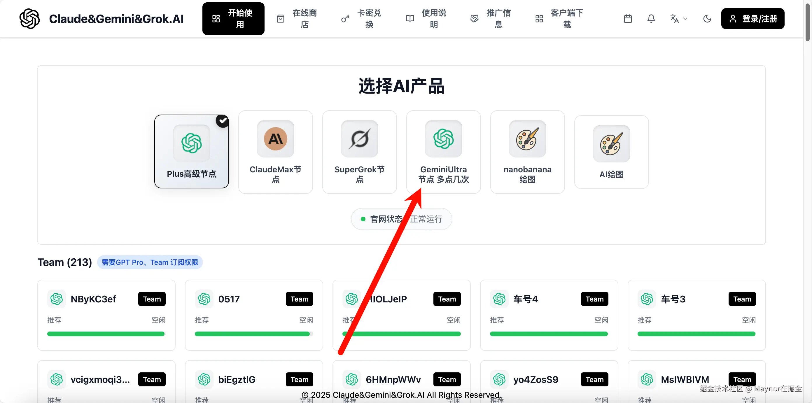 现在国内想要体验 Gemini Ultra 模型,不需要复杂的魔法网络。登录下方网站,选择 Gemini Ultra 节点,购买套餐后即可使用,价格不到官网的一半,简直香到爆!💥