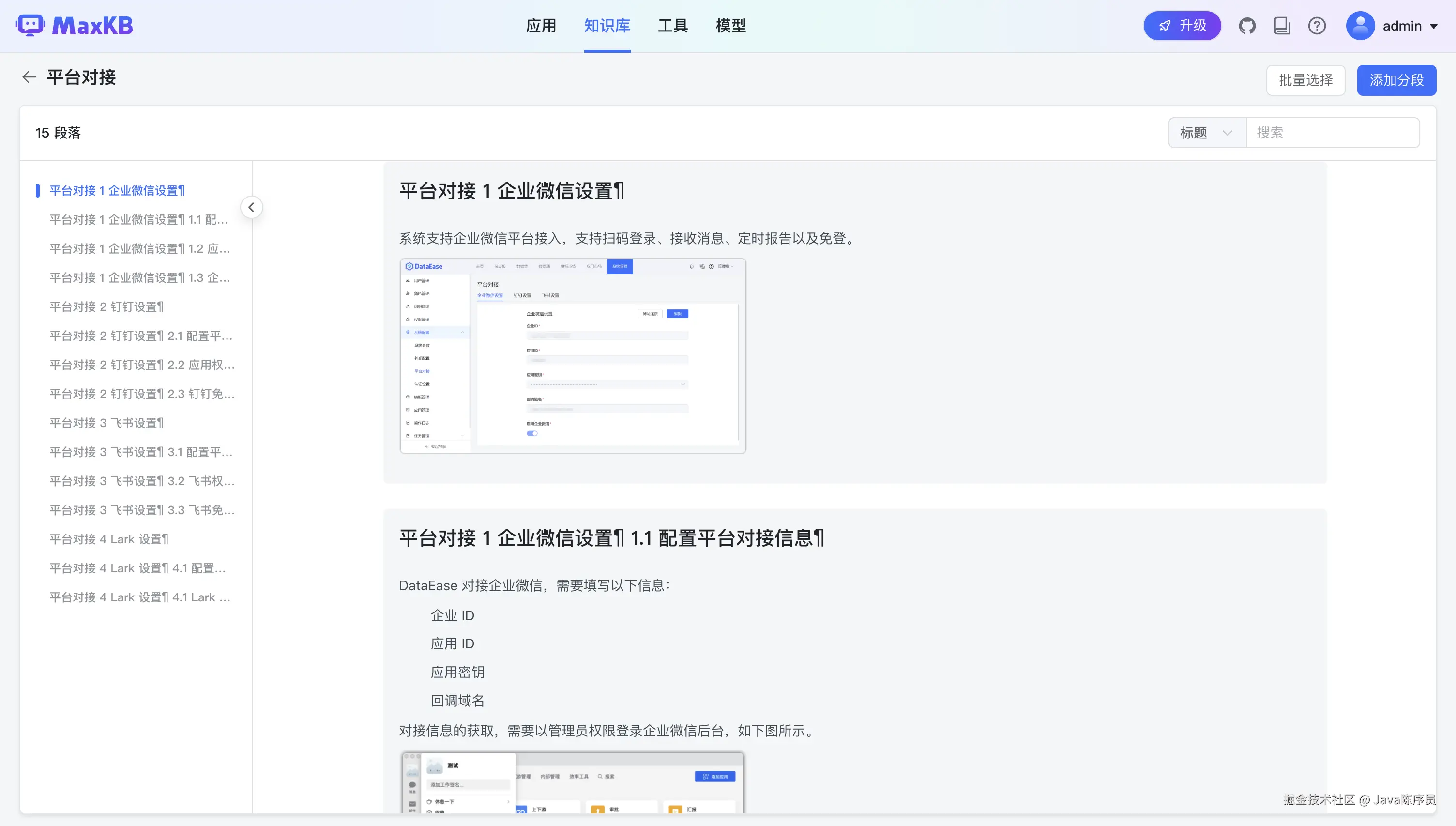 - RAG 检索增强生成:支持通过自动文档上传、在线爬取、文本拆分与向量化,快速构建企业专属知识库
