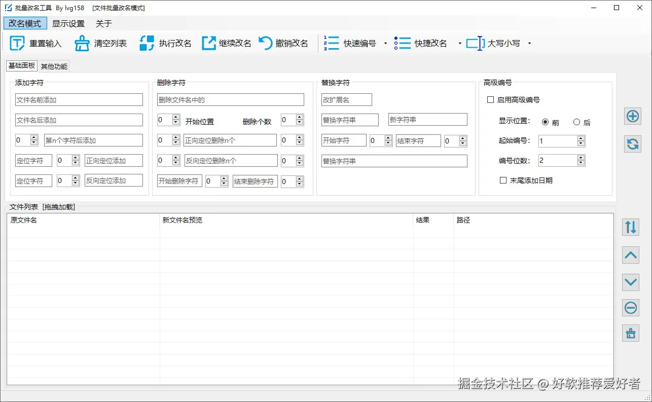 区别于同类批量重命名工具,该工具支持撤销最近一次改名操作,有效降低误操作导致的命名错误风险,让文件批量重命名更安全放心。