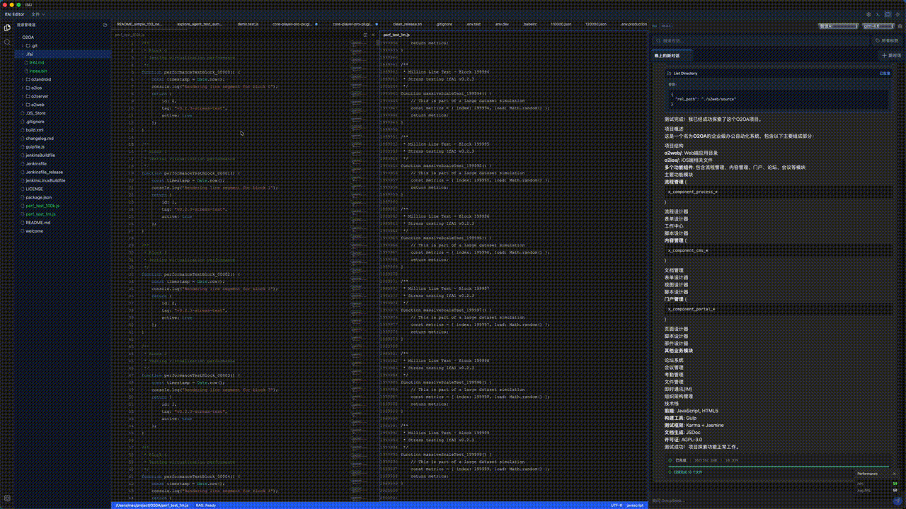 - 虚拟滚动 (Virtual Scrolling) :不管你的项目有 1 万还是 10 万个文件,文件树永远只渲染屏幕上可见的那几十个 DOM 节点。实测渲染性能提升 10 倍,滚动起来丝般顺滑。