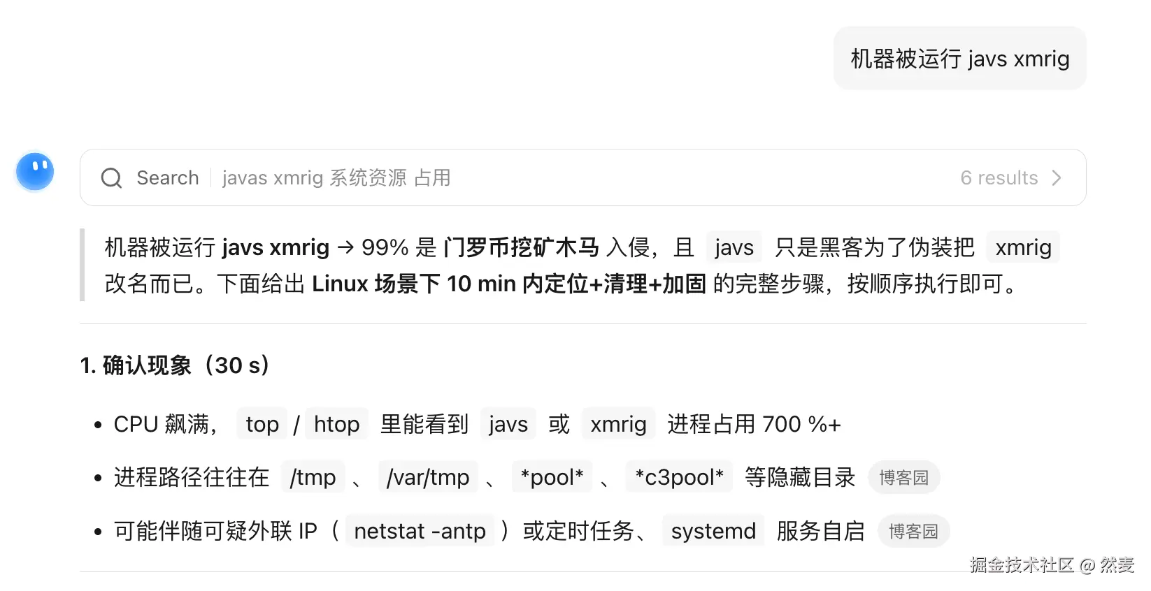 除了 hash进程 CPU 飙高以外,还有2 个进程 xmrig和 javs, 启动进程的用户是 1001,用 AI 查一下对应进程是什么