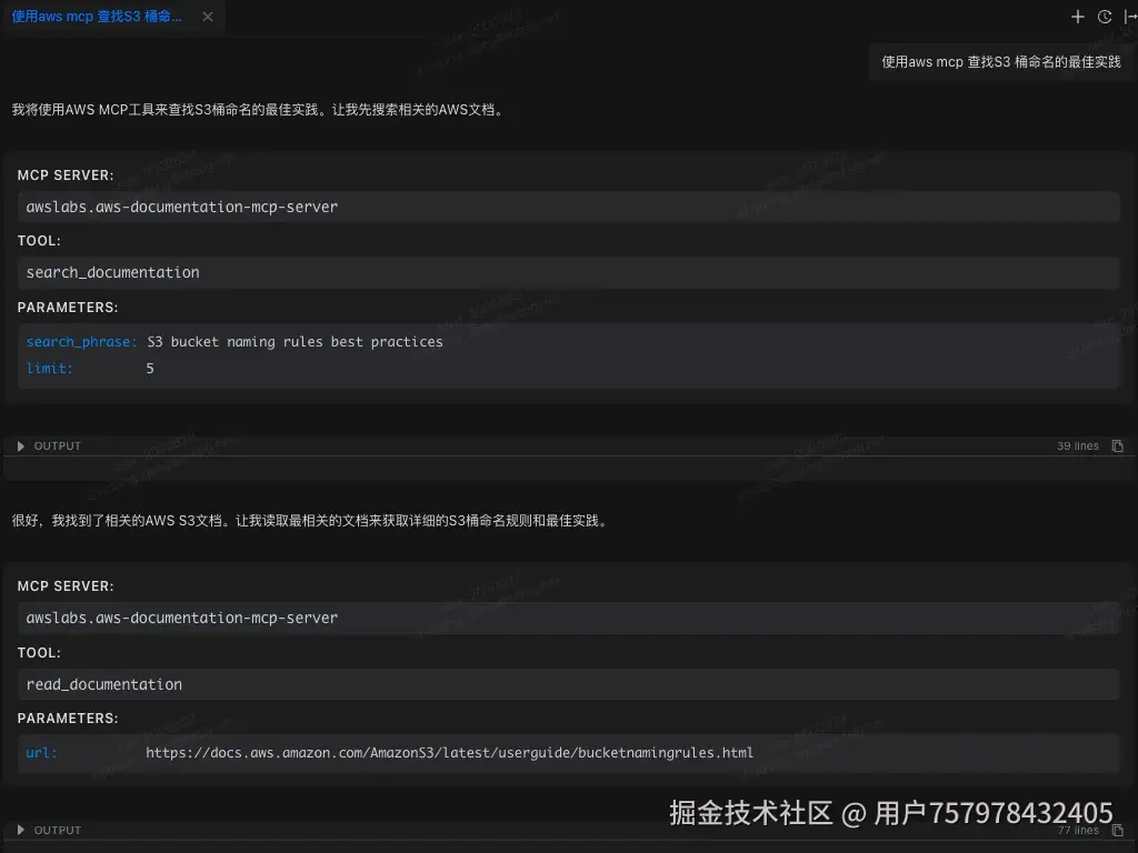 - 功能与适用场景: AWS MCP 服务器包括文档查询服务、基础设施管理服务和安全扫描服务等,可让 AI 按照自然语言执行 AWS 资源创建、配置和审计等操作。例如,可以查询最新的 AWS API 参考、生成 Cloud Formation 模板或监控 EKS 集群状态。