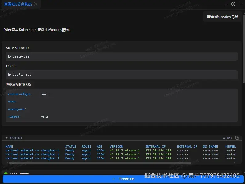 - 功能与适用场景: AI 可以查询资源状态(如 pod 列表、节点指标),部署新服务或扩展现有部署,甚至执行复杂的故障排查。示例场景包括“检查命名空间内有哪些异常 Pod”“帮我滚动重启某个 Deployment”之类。