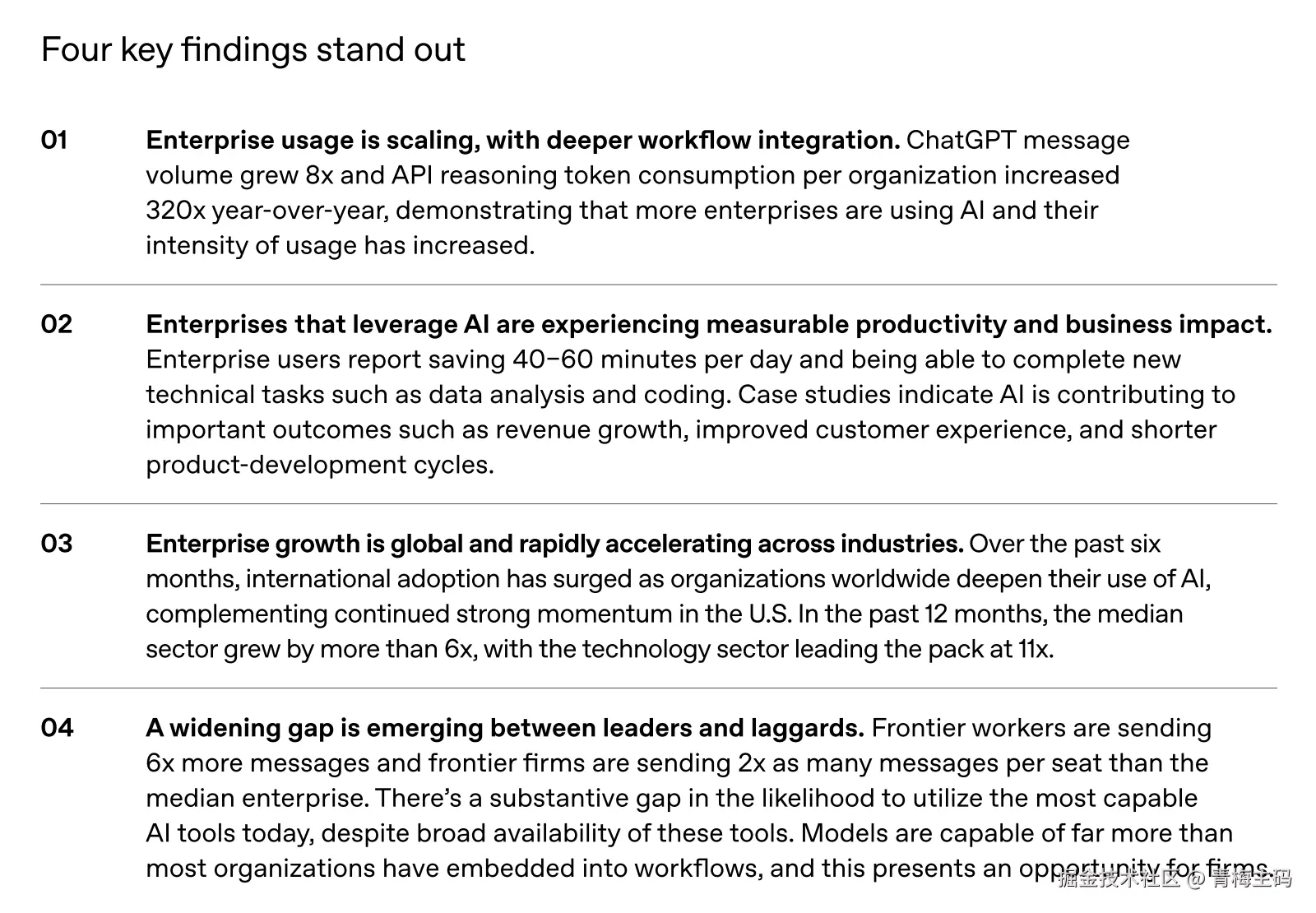 报告提炼出四大关键发现,直击当前企业 AI 的真实脉络: