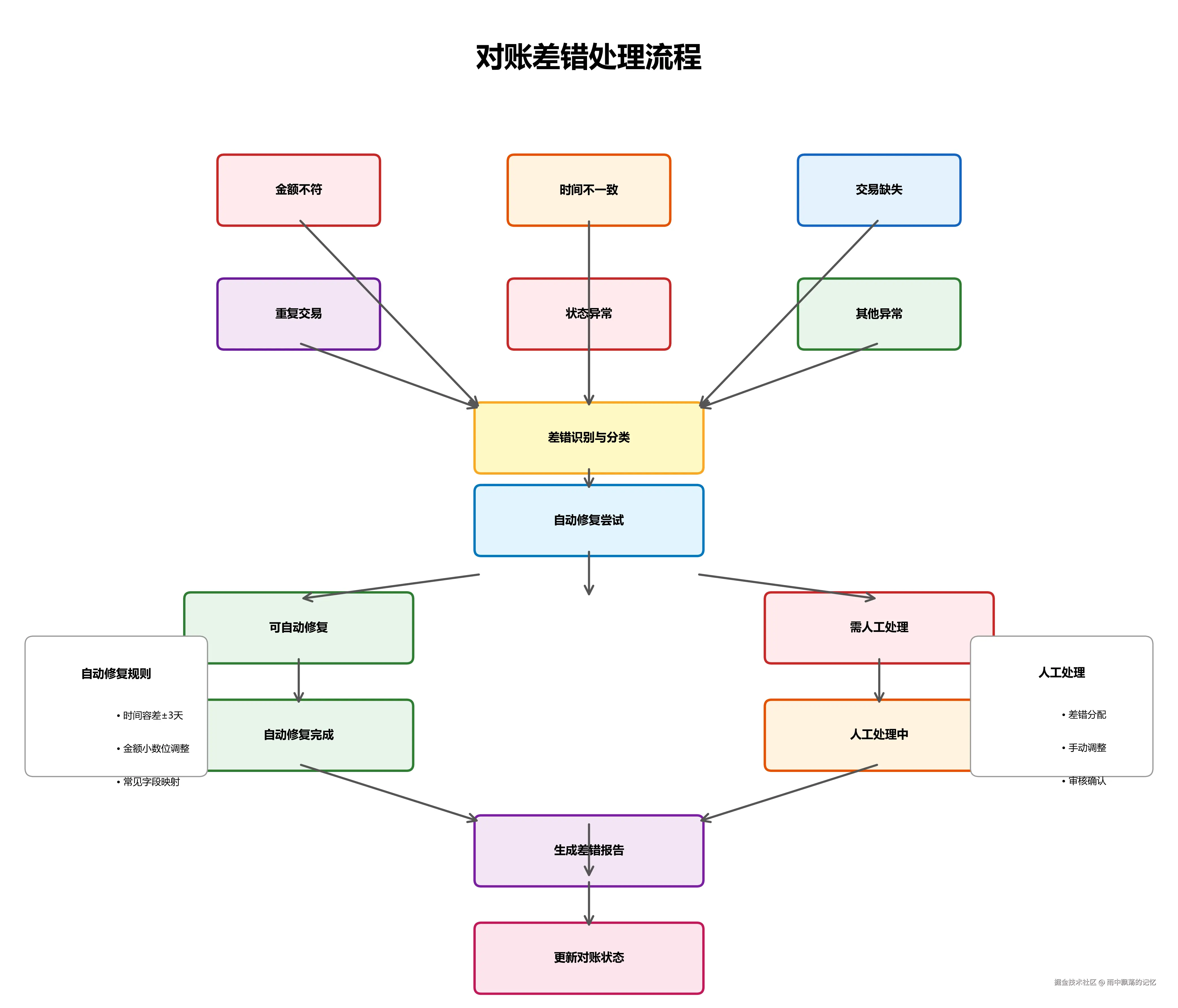 自动修复成功后,系统记录修复日志,更新对账状态。
