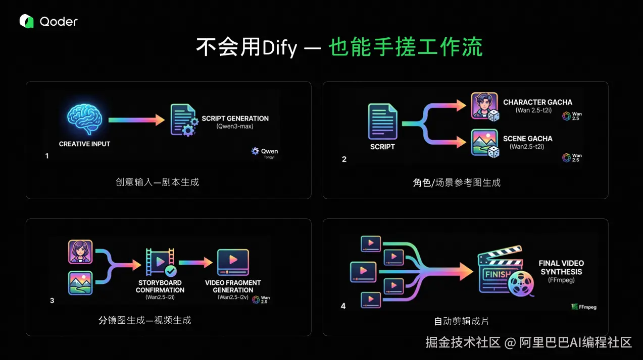 大家好,我是阿里云解决方案架构师邵楷文。我在服务客户过程中发现:初创漫剧公司与教育机构普遍面临制作成本高、周期长、工具割裂等痛点。于是,我仅用自然语言,在 Qoder 中“说”出了一个端到端的 AIGC 漫剧生成智能体,实现了从“一句话创意”到“一分钟成片”的全流程自动化。