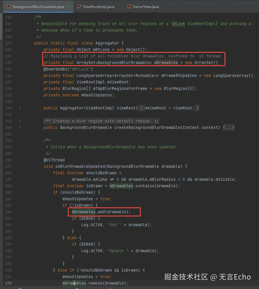 Aggregator如何连通ViewRootImpl和BackgroundBlurDrawable