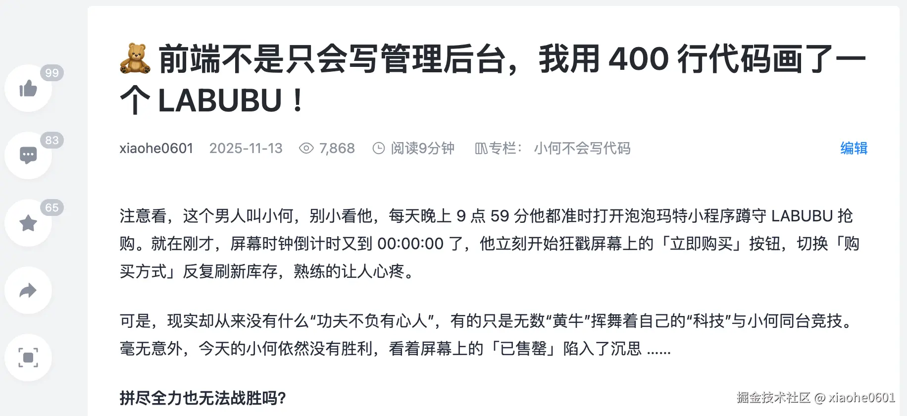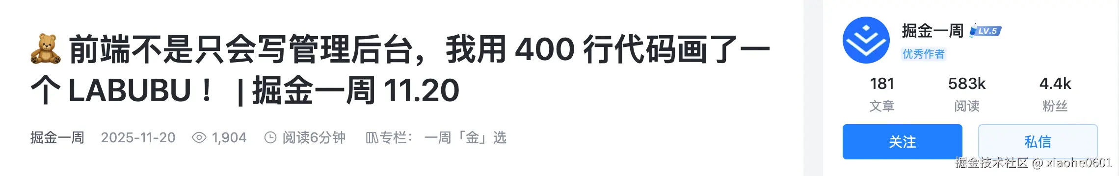 不可思议,我的文章火了!冲上热榜第一,也如愿登上「掘金一周」作为标题。