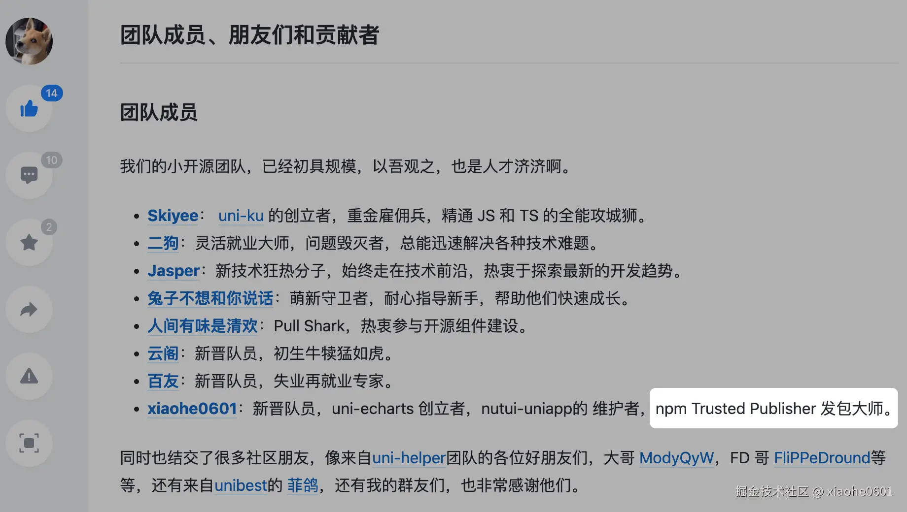 今年为 Wot UI 贡献了一些文档相关的改进,有幸得到作者 @不如摸鱼去 的邀请成为团队成员。