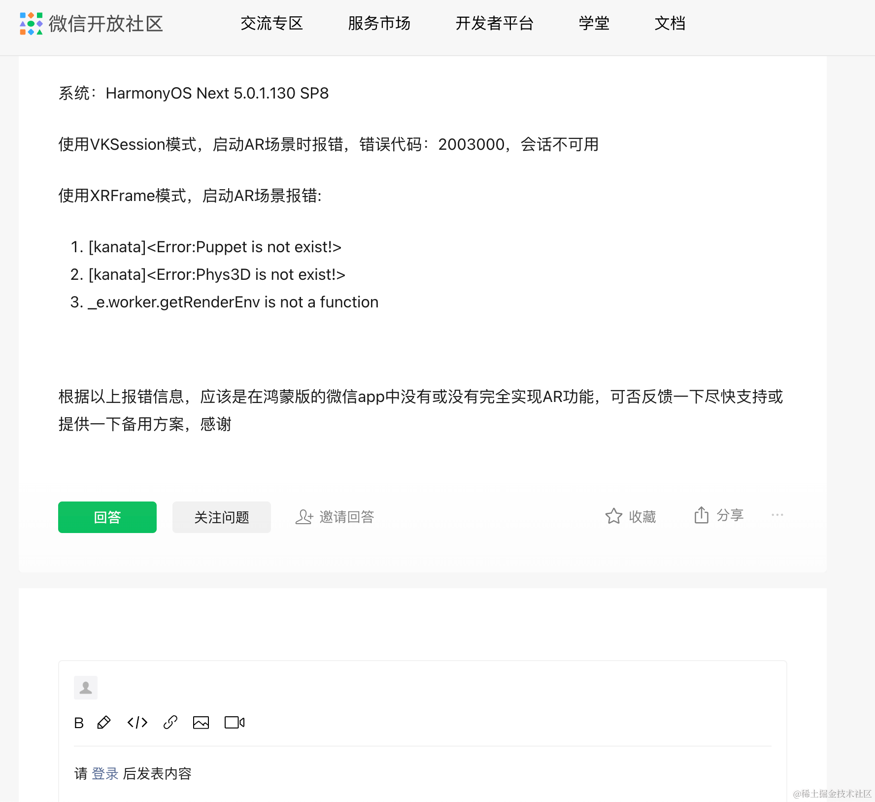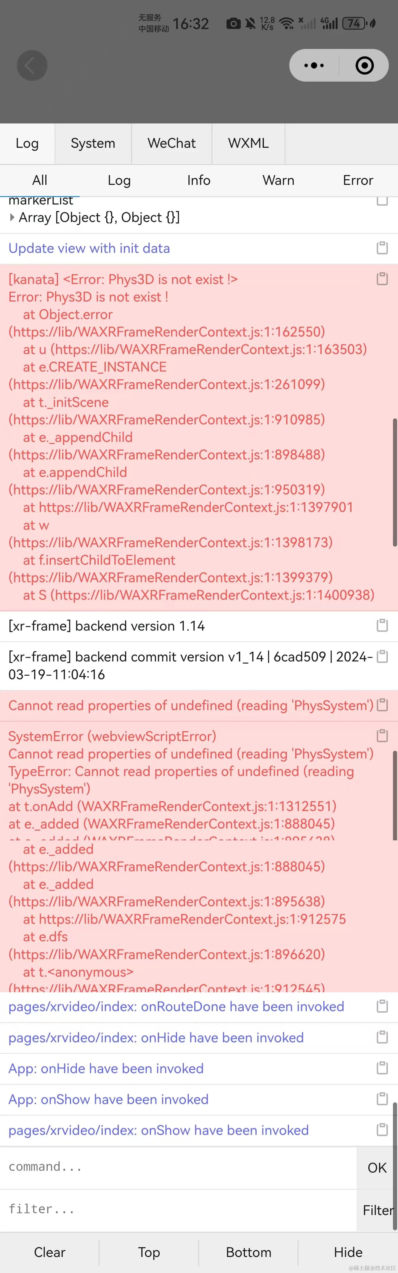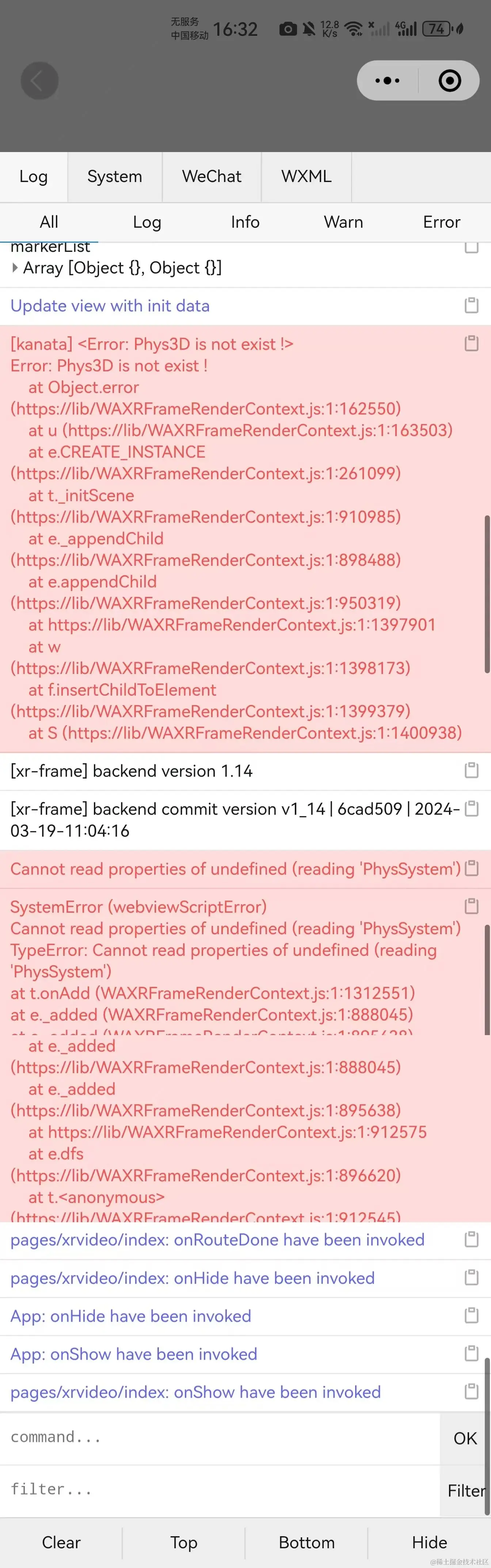 再重新启用ar扫描页面,应该就不会报错误了,测试安卓是可以正常使用的