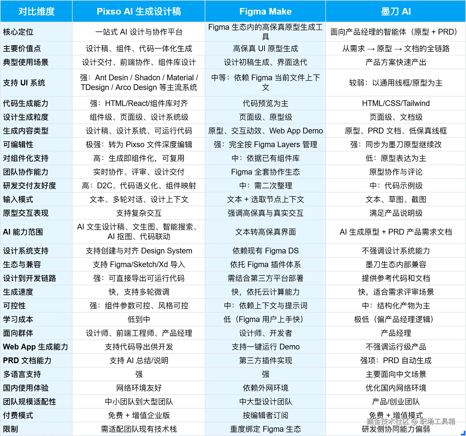 现在市面上的 AI 生成设计稿工具不少,但 Pixso AI、Figma Make 和 墨刀 AI 这三款工具各有特色,成了大家关注的重点。
