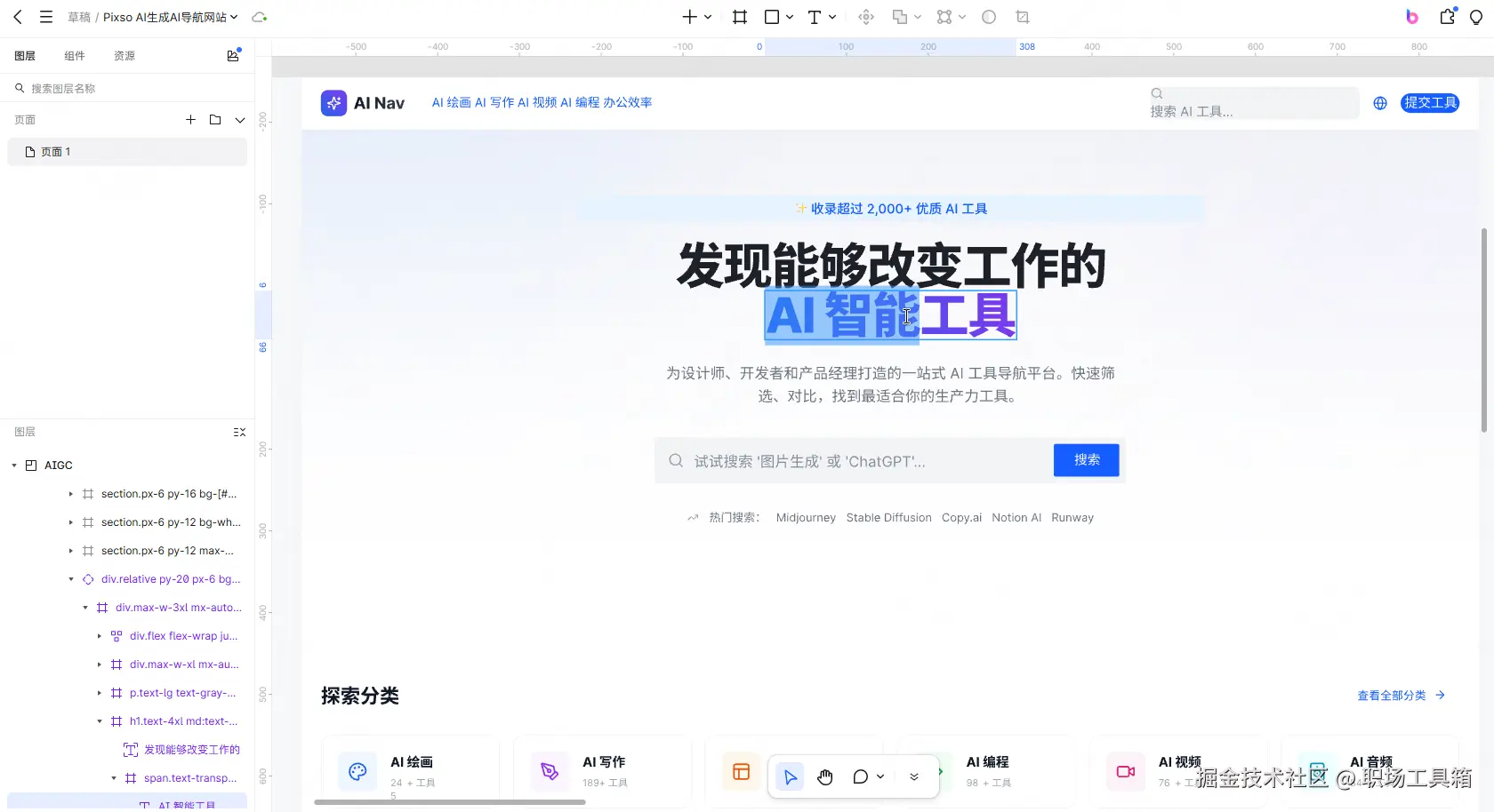 ② 无缝衔接:AI 生成后,自由编辑设计稿