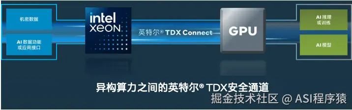CPU的安全控场功能,可不是自娱自乐,而是要拉GPU一起——当CPU要和GPU协同处理AI任务时,TDX Connect技术可在CPU可信域和GPU等异构加速器之间,建立一条硬件加密的数据通道,让“CPU+GPU”这对黄金搭档的协同既快,又更保险。