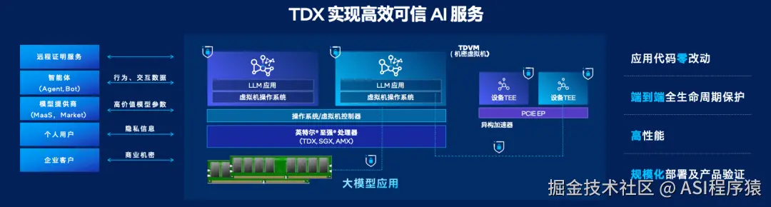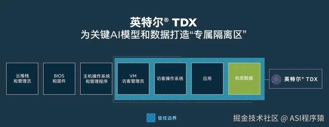 这就要回到英特尔不断强调的基于硬件、集成在CPU里的可信计算或可信AI技术了。它的TDX(Trust Domain Extensions)技术,核心使命就一个:让CPU担起安全控场的角色,让GPU专心做计算,两者结合实现互补,成就既高效又更为可信的AI能力。